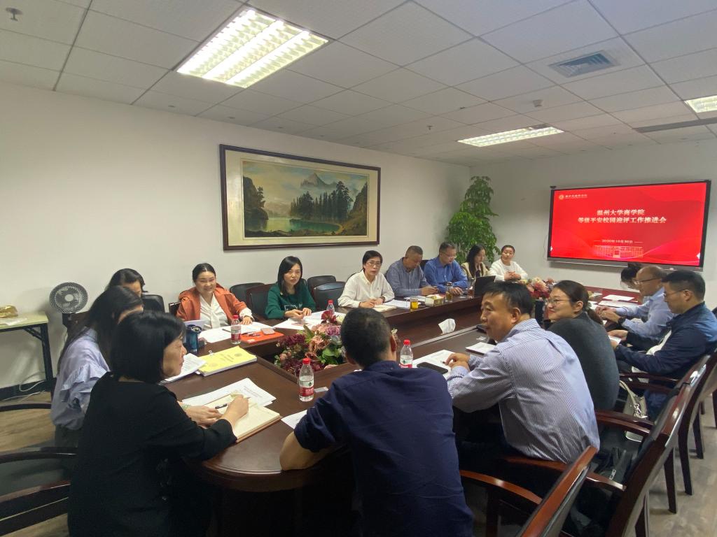 在北校信息楼A222会议室召开等级平安校园迎评工作推进会,会议由学院党委书记郑彩莲主持。
