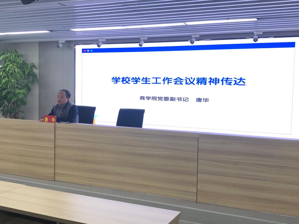 学工办于A226仲辉商道讲堂召开全体班主任工作会议。学院党委书记郑彩莲、党委副书记唐华、学院全体本科生班主任及辅导员出席会议,本次会议由学工办副主任周洁文主持。