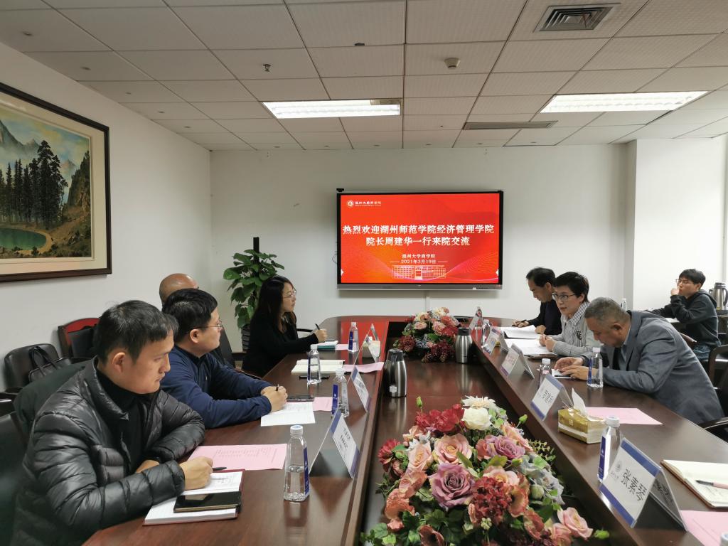 2021年3月19日,湖州师范学院经济管理学院院长周建华、副院长唐洪雷、副院长杨振华、综合办主任周培一行来院交流,双方在信息楼A222展开座谈会就硕士点建设和专业发展等相关工作进行交流。老王论坛