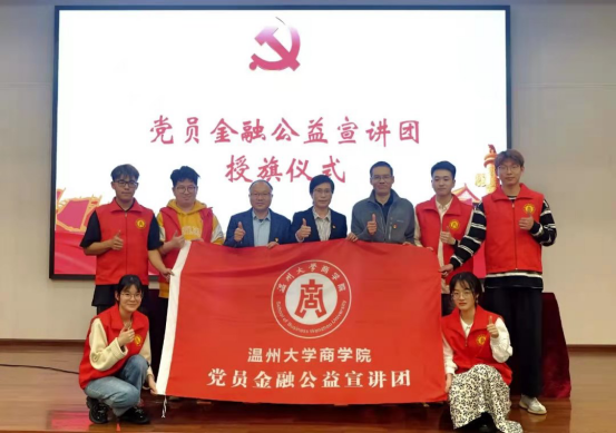 随后,辅导员聂海燕介绍学院拟重点打造的党建品牌“党员金融公益宣讲团”项目。该项目基于当前各类金融陷阱层出不穷,严重侵犯大学生的合法权益的现实背景和党史学习教育“为群众办实事”具体要求,结合我院的学科特色,以现有的团队、专业、平台为支撑,准备集中优秀学生党员力量,深入开展各类金融公益宣讲服务,为建党100周年贡献商院力量。会上,院领导为党员金融公益宣讲团师生代表授旗。