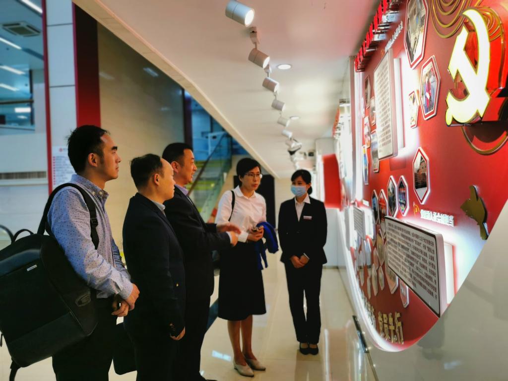 校友会副会长90企管夏捷胜校友带领母校的各位老师和校友们参观了中国银行温州分行党建引领下的银行文化建设与展示厅。他表示,作为温州大学的毕业生很骄傲与自豪,感谢母校的培养,而身处金融行业的自己能比旁人更加深刻地感受到母校的蓬勃发展,并代表所在党支部表达了和母院银校共建的意愿。