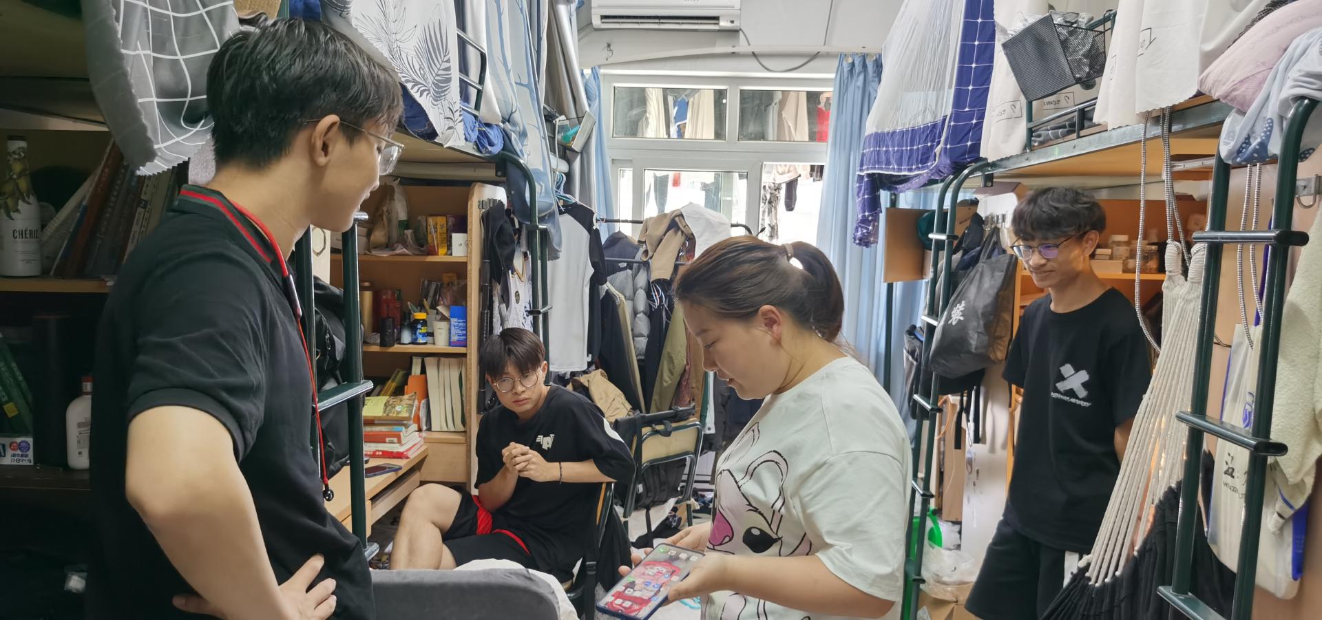 每到一处,辅导员老师对同学们的近期的学习、生活等方面都进行悉心关怀。针对最近同学们关心的疫苗接种和疫情防控问题进行一一解答的同时,还着重强调了寝室用电安全,饮食卫生安全问题,告诫同学们不要因为天气炎热在寝室使用蚊香等安全隐患较大的灭蚊工具,注意防暑及饮食安全减少点外卖的次数。