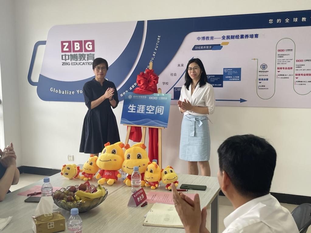 党委副书记唐华、外国语学院党委书记姜海燕、校友办主任陈宏毅,教育学院党委副书记彭小媚、招就处朱丽莉、中博教育集团华东校企总监李仕萍、浙江分公司总经理邱芳等参加了会议现场。