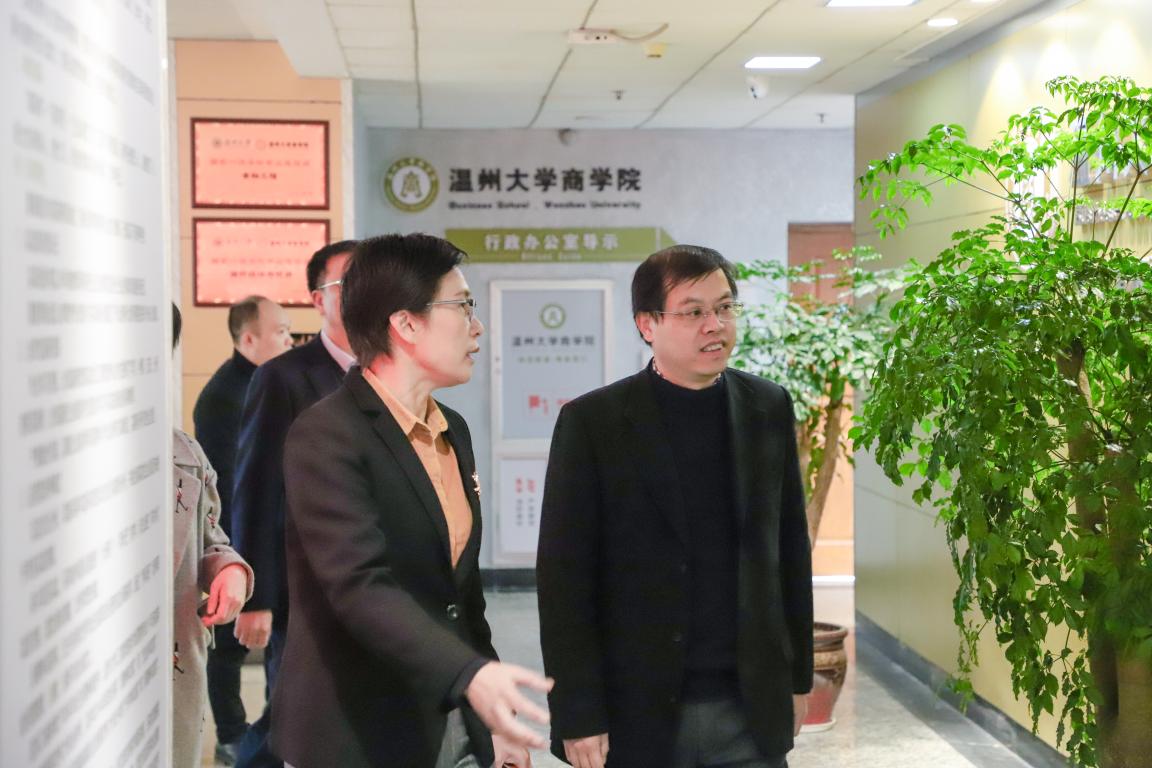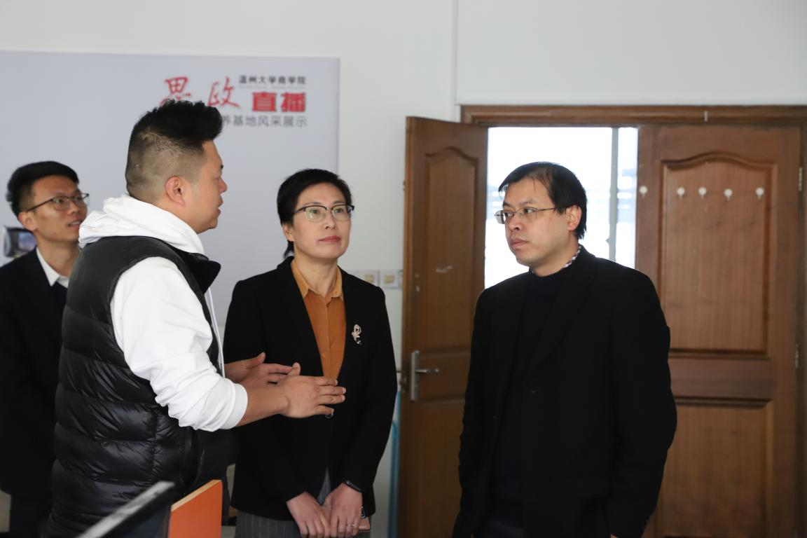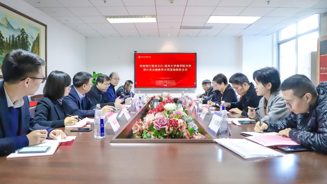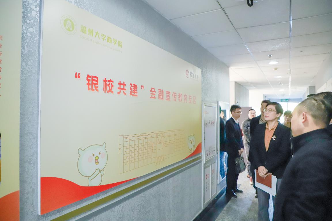 和招商银行温州分行共同申报的省级金融教育示范基地建设情况,并召开了验收会议。参加验收会议的还有招商银行温州分行副行长李永恩、办公室主任陈时蔓等。一行人首先来到位于温大北校区二楼北面的金融教育宣传专区(金融教育文化长廊),听取了温大老王论坛