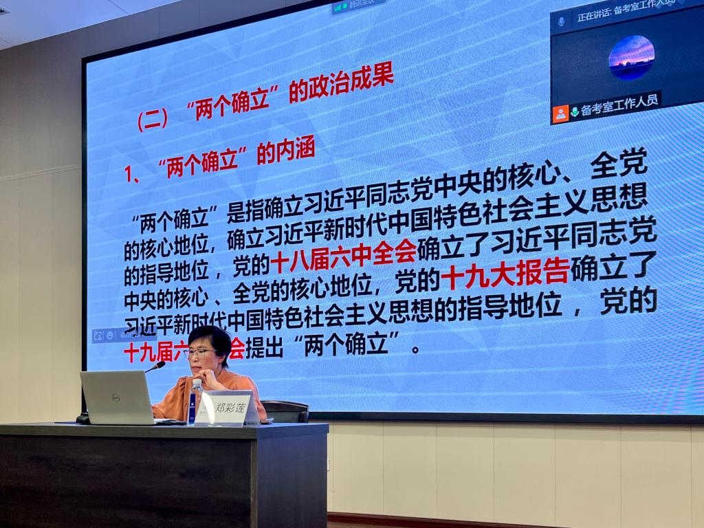 全体学生深刻学习、领悟、贯彻党的十九届六中全会精神,明晰坚定不移走中国人权发展道路的时代意义,4月20日下午和晚上,学院特别邀请了学院党委书记郑彩莲教授、法学院袁士杰博士在北校区信息楼报告厅以线上线下相结合的方式为学院全体学生分别开展主题为“十九届六中全会精神解读”“坚定不移走中国人权发展道路”的讲座。