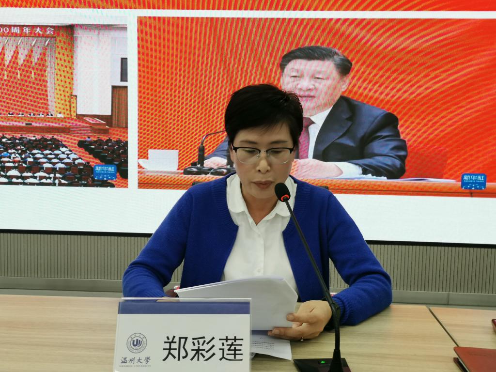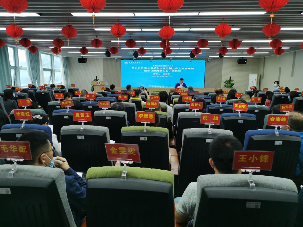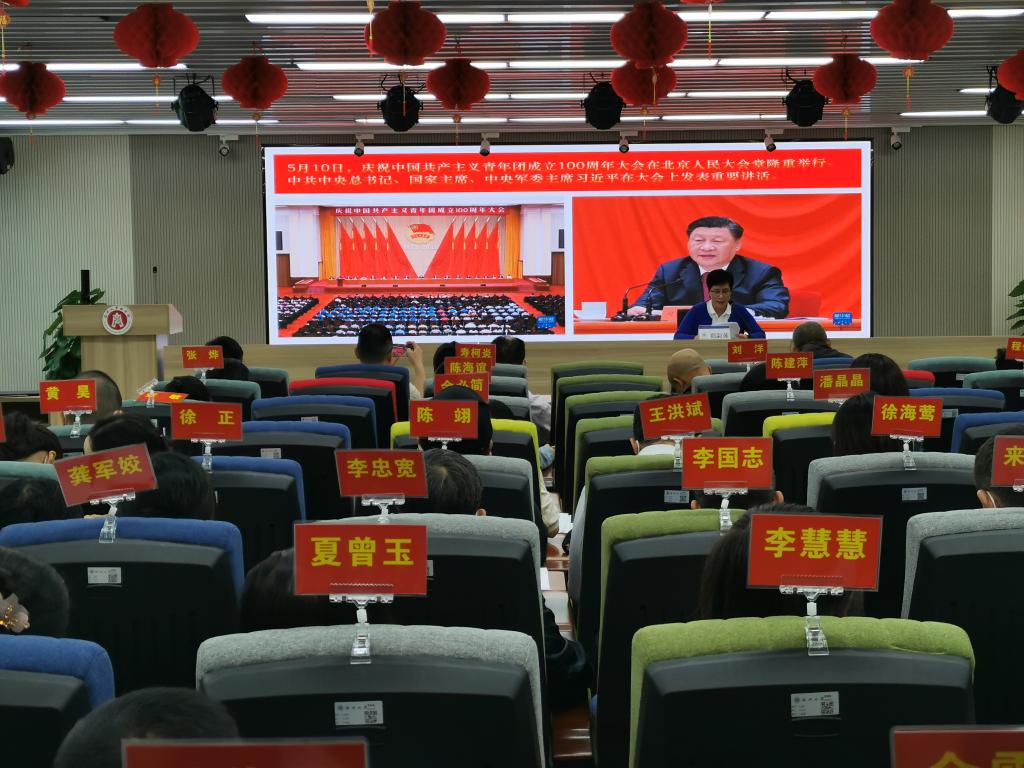 在北校区商院楼A226举行全体教职工政治理论学习会,学习贯彻习近平总书记在庆祝中国共产主义青年团成立100周年大会上的重要讲话精神。全体教职工参加学习,学院党委书记郑彩莲领学。