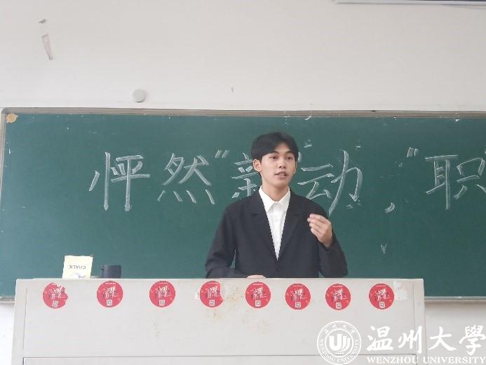 本次活动以银行类职位为模拟对象,设置了包括办公室经理、国际业务部经理、财务经理、理财经理、助理秘书等在内的五个待聘岗位。在第一阶段的简历筛选之后,共计17位同学进入第二阶段的模拟面试。他们来自温州大学不同的学院和专业,带着挑战自己、收获成长的目的上台,展示了最真实的自己。
