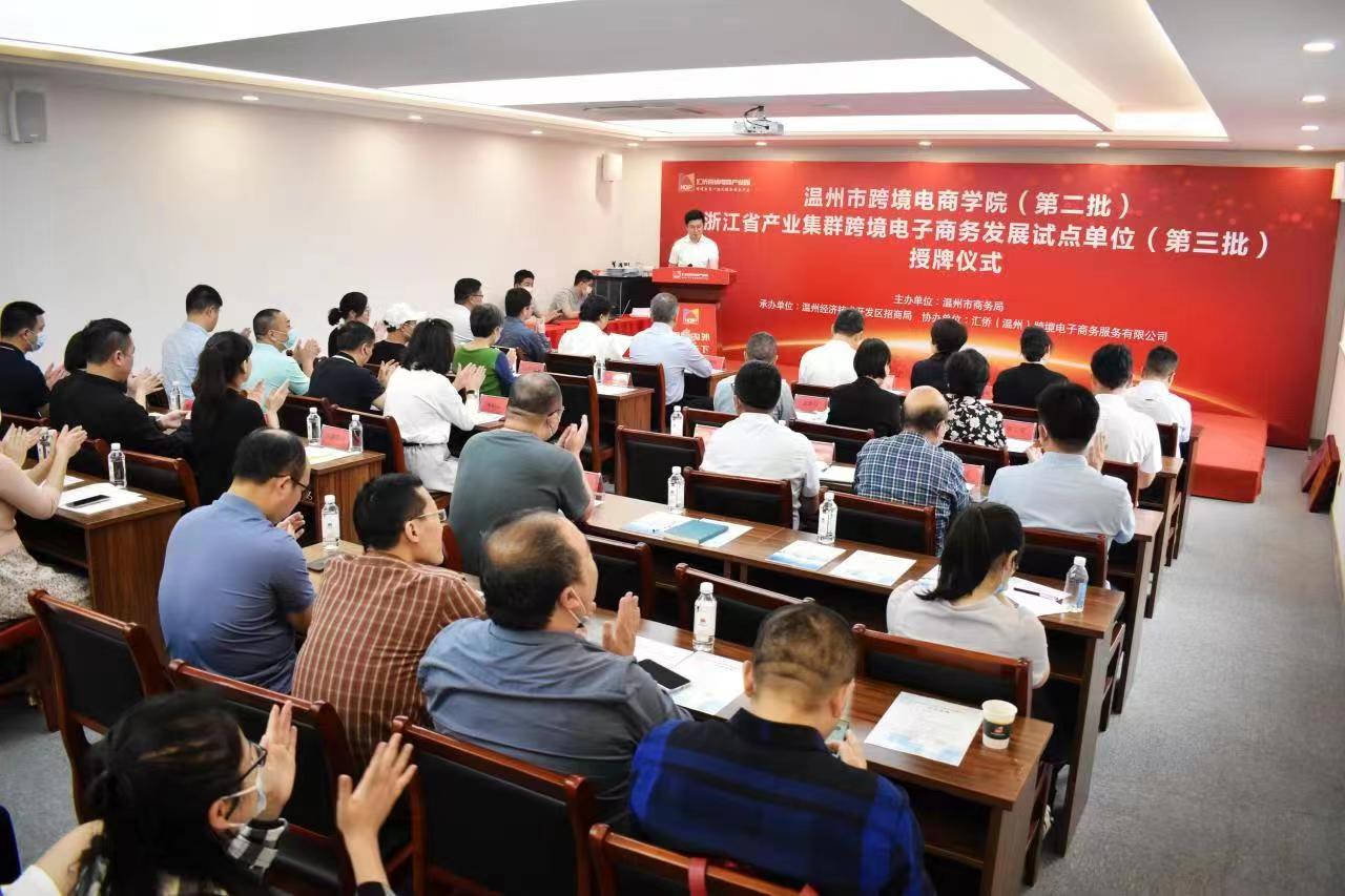 仪式上,为乐清市电器、苍南县针织内衣、龙港市礼品、经开区五金卫浴等获批浙江省第三批产业集群跨境电商发展试点单位及入选第二批温州市跨境电老王论坛