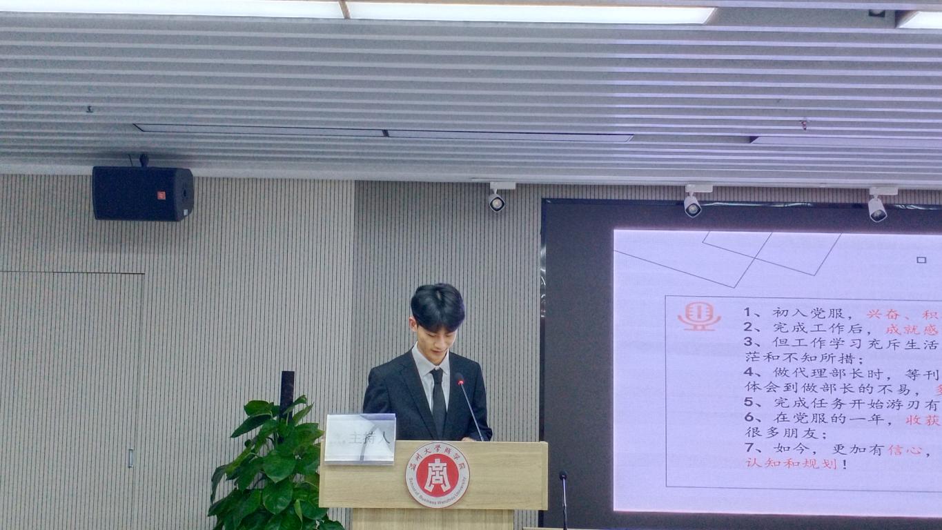 随后,各竞选人进行竞选演讲。他们从自身优势、工作经历和未来展望等方面进行汇报。并表示会在未来的工作中认真学习,为学校、学院的党建工作的发展贡献自己的力量。