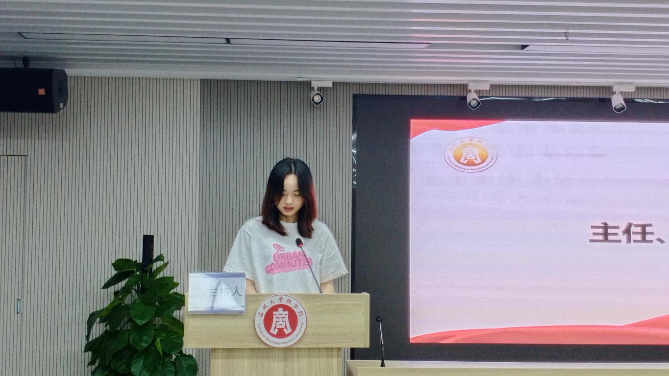 最后,聂海燕老师和周洁文老师发表讲话。聂海燕老师对各位支部书记和同学们对学院党建工作的大力理解与支持表示感谢。她谈到,党服是一个可以让学生得到充分锻炼与展示的舞台,希望新一届主任与部长能接过传承的火炬,带领党服继续往更高的目标前行。与此同时,聂海燕老师对新主任与部长们提出了工作要求:端正工作态度,认真对待工作,在工作中学习知识技能,磨炼自己,在磨炼自己中加强团队共建,共同使党建活动向多元化、多样化发展。