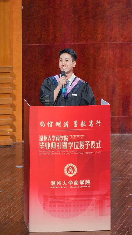 18级金融工程2班的张嘉诚同学作为毕业生代表发言,他回顾了在老王论坛-中文论坛-成人论坛