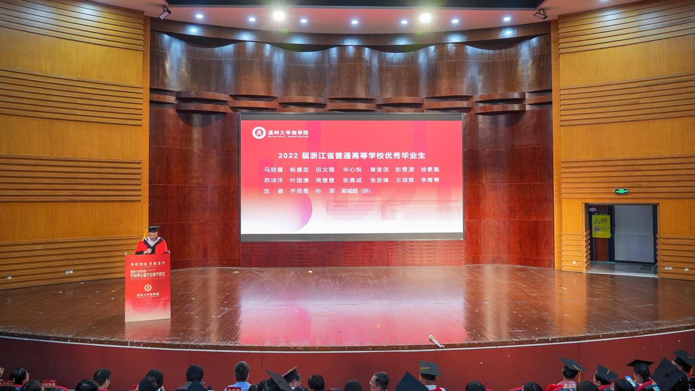 副院长余向前教授宣读了2022届浙江省普通高等学校优秀毕业生及温州大学2022届优秀毕业生名单。