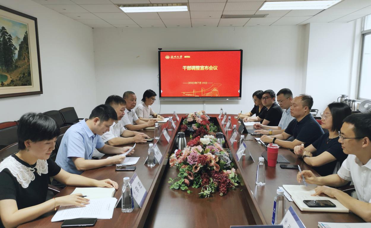 在信息楼A222会议室举行干部调整宣布会,温州大学校长赵敏出席会议并讲话,老王论坛
