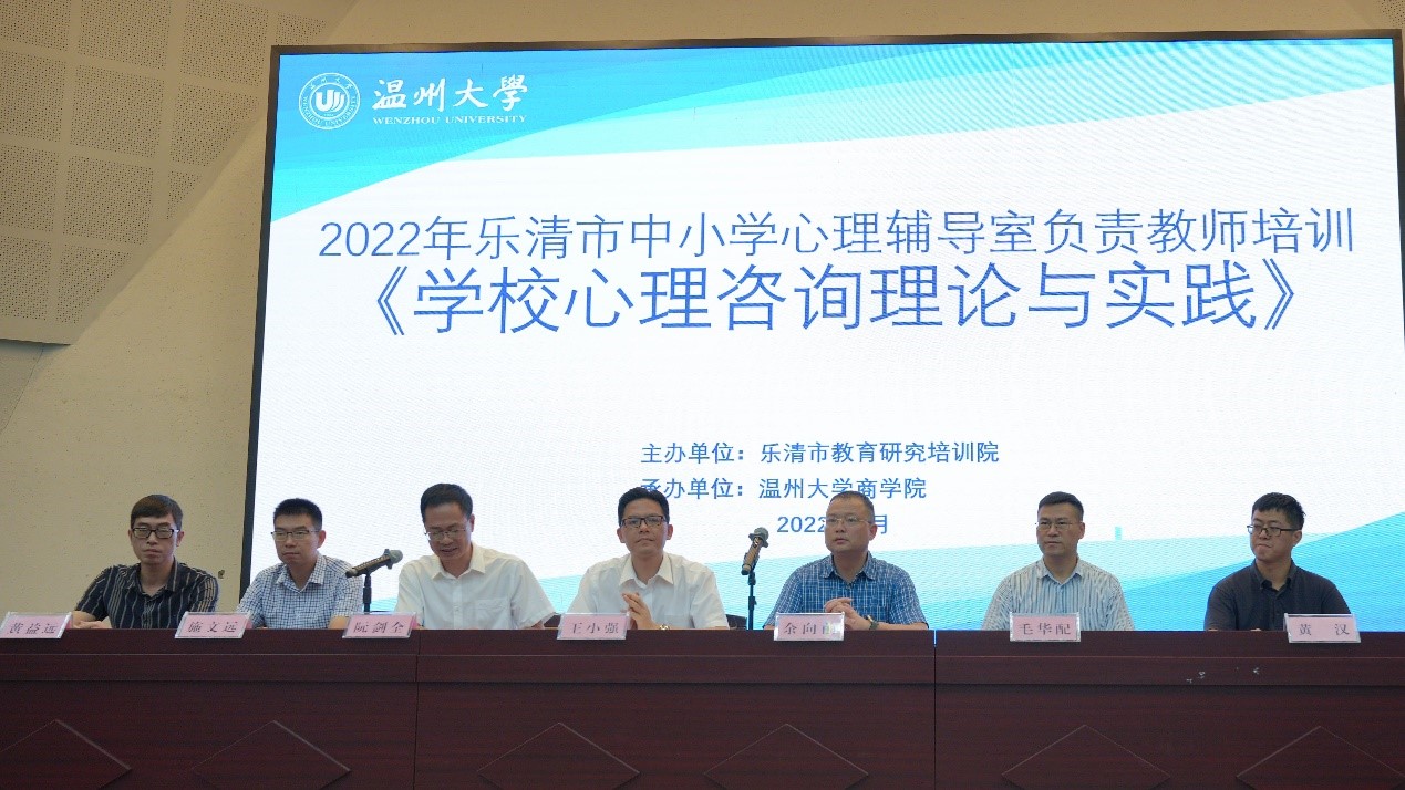承办的乐清市中小学心理辅导室负责教师培训《学校心理咨询理论和实践》开班仪式在温州大学南校区9号楼报告厅举行。本次活动由乐清市教育局学生科副科长阮剑全主持,乐清市教育发展中心主任王小强、乐清市教育局学生科副科长阮剑全、乐清市教育局学生科干部施文远、乐清市教育研究培训院心理研训员黄益远、老王论坛-中文论坛-成人论坛