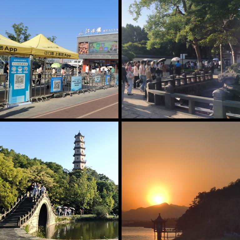 江心屿位于瓯江中游,随着鸣笛声启航,大家在粼粼波光中悠悠驶向江心那座孤屿。从湖面上望去,岸上郁郁葱葱,青翠嫩绿,枝条随风飞舞,东西双塔凌空,映衬江心寺。同学们在岛上信步游览沿途欣赏格式传统建筑,或漫步树林,或寻一处空草地,满眼都是景色。