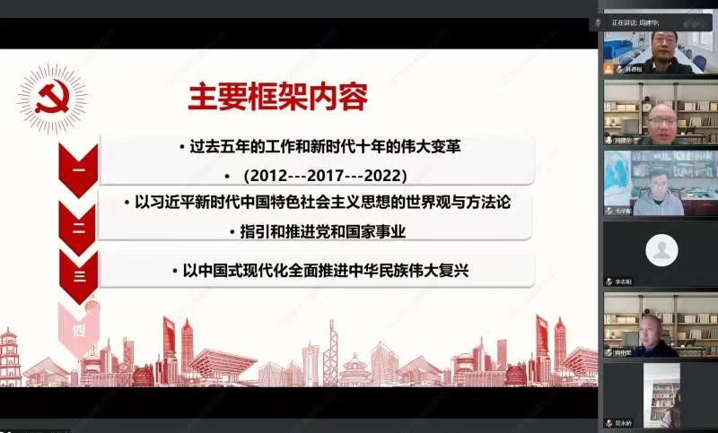 周建华书记做的关于二十大的报告生动,内容详实,老师们从不同角度也对报告进行了解读,同时与课程内容和课程思政关系进行了解读,吉云教授、毛华配教授就当前的疫情和教学提出了自己的看法。