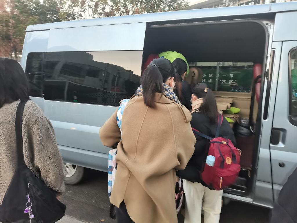 为确保考生准时抵达考场,学院提前收集考生考点信息,制定了东西两条护送行车路线,从溯初学区出发,东线奔赴温州八高;西线开往温州中学、温州二外、二十一中学。12月24日清晨6点半,不惧寒风凛冽,准备考试的学子们已经提前来到乘车地点,他们或手捧着复习资料,为了即将开始的考试做最后的冲刺准备,或互相交流复习情况,互相勉励,提振士气。6点40分,送考专车准时到达,在送考老师的指引安排下,同学们井然有序地上车。7点整,满载着学生的专车,平稳使出校园,护送着全体考研学子奔向考研考场,在为期两天的考试中,他们将全力以赴,为实现自己的梦想而拼搏。