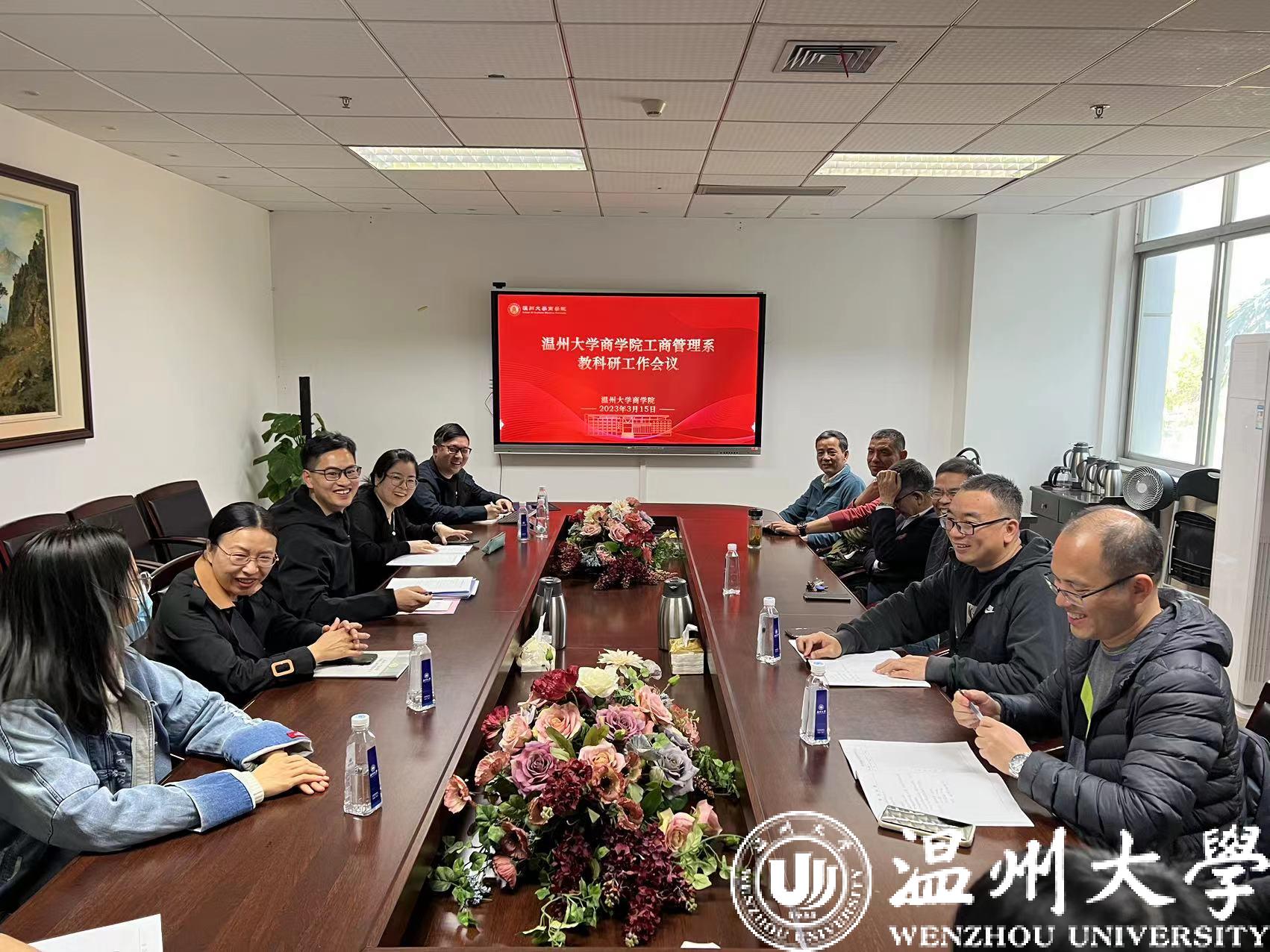 工商系在商学楼A222会议室举行本学期第二次教科研工作会议,工商系全体教师参加,会议由系主任陈敏老师主持。