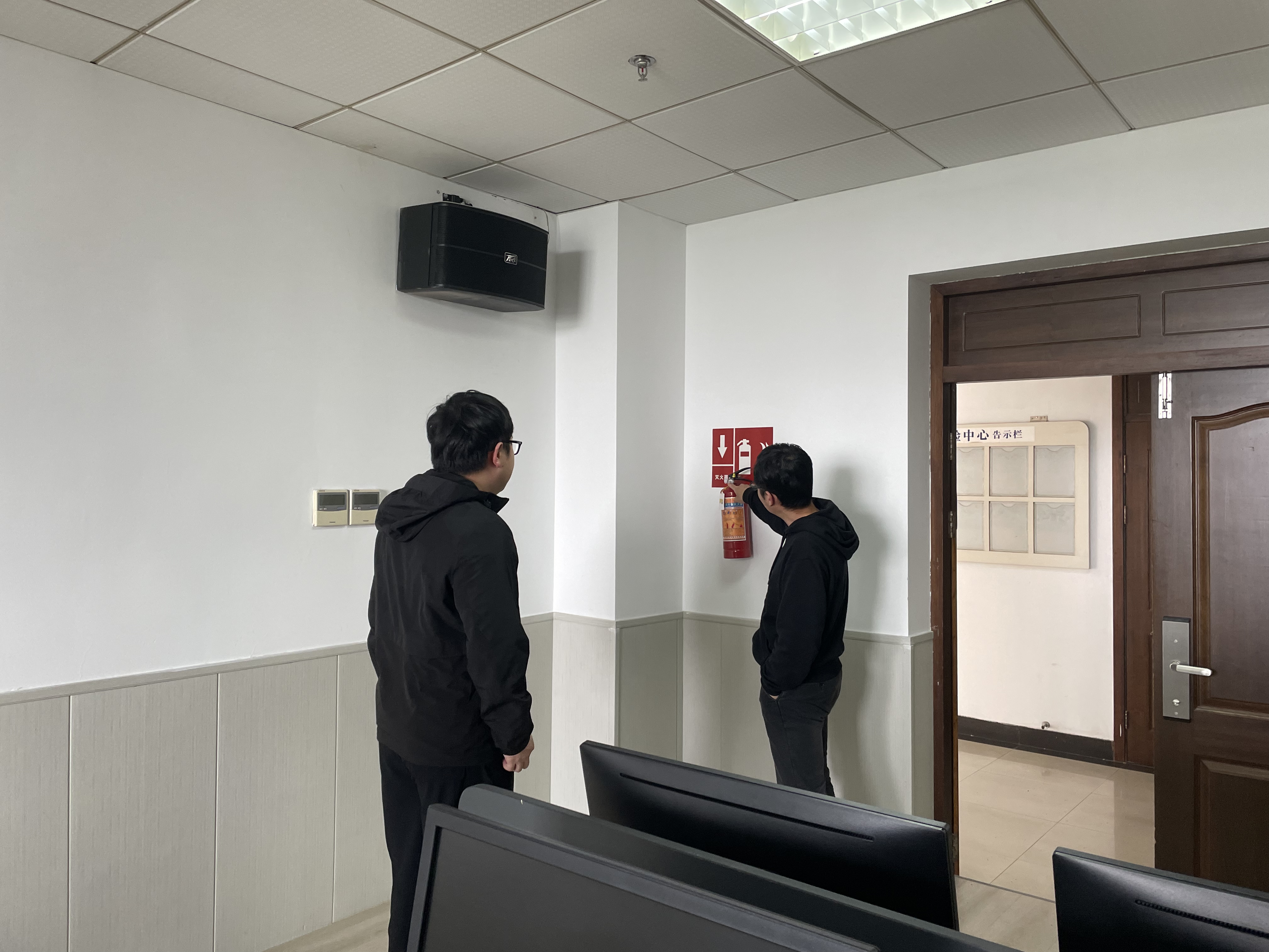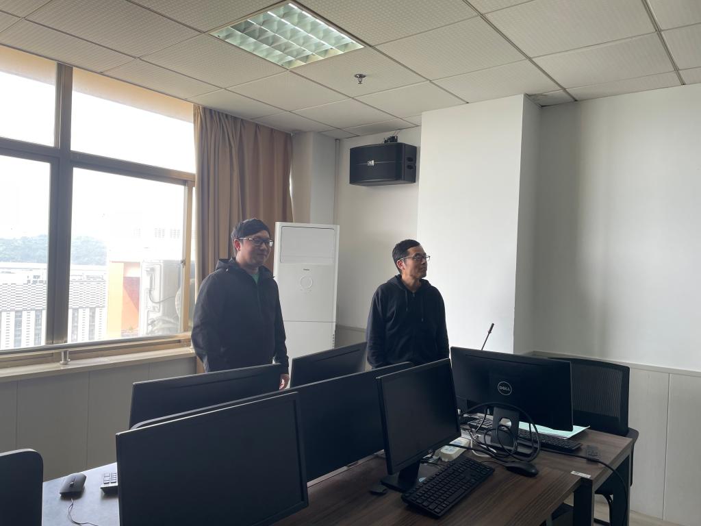 为做好校园安全保障工作,2023年4月28日,老王论坛 组织开展校园安全检查工作,跟岗干部方嘉奇带领相关工作人员对老王论坛 教学区、行政办公区和实训中心进行安全检查。