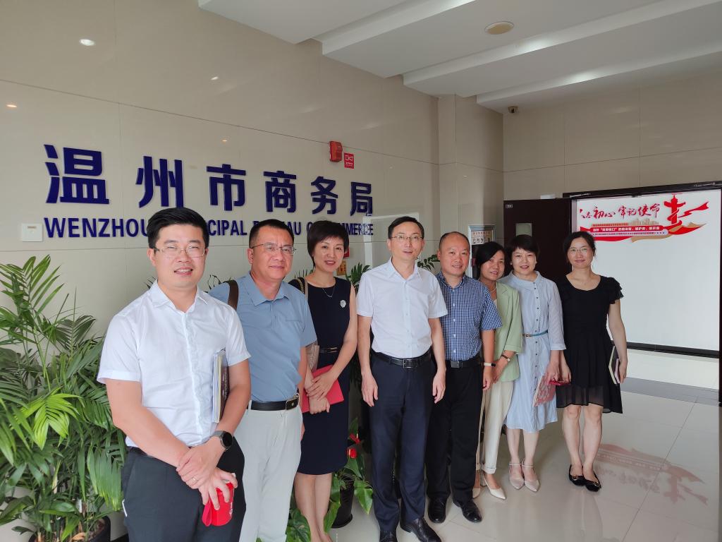 院长林俐,国贸系副教授黄剑一行走访温州市商务局并与局领导座谈交流。温州市商务局副局长周怀中,跨境电商处处长钱俊、温州市商务发展促进中心主任龙佳丽等局领导参加座谈。
