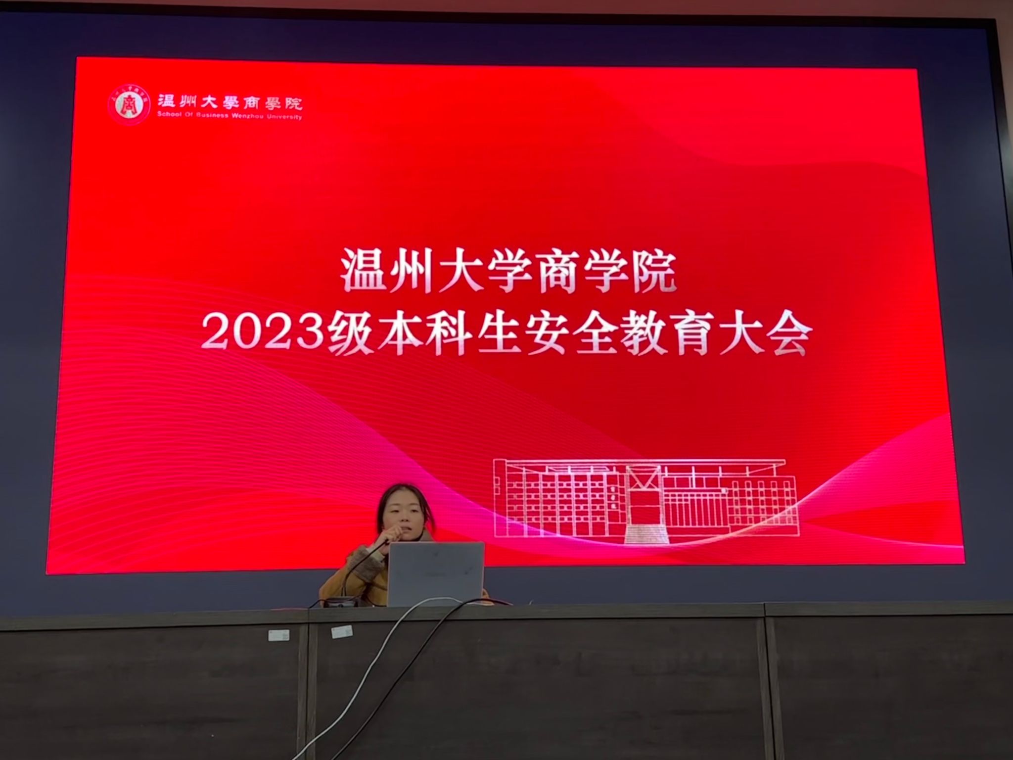 在北校报告厅召开2023级新生安全教育大会。2023级辅导员胡施施出席并主持大会,2023级全体本科生参加本次会议。