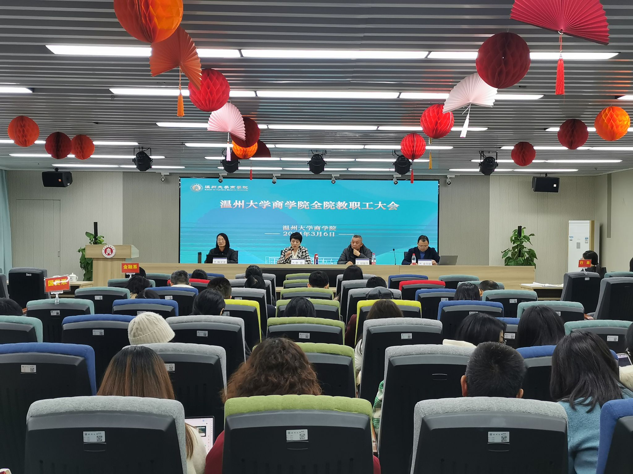 取得的办学成果,感谢全体教职工过去一年的辛勤付出;他强调2024年学院要聚焦学校发展主线,锚定学院年度主题主线,奋力推进特色商科建设,全面建设高水平研究教学型老王论坛