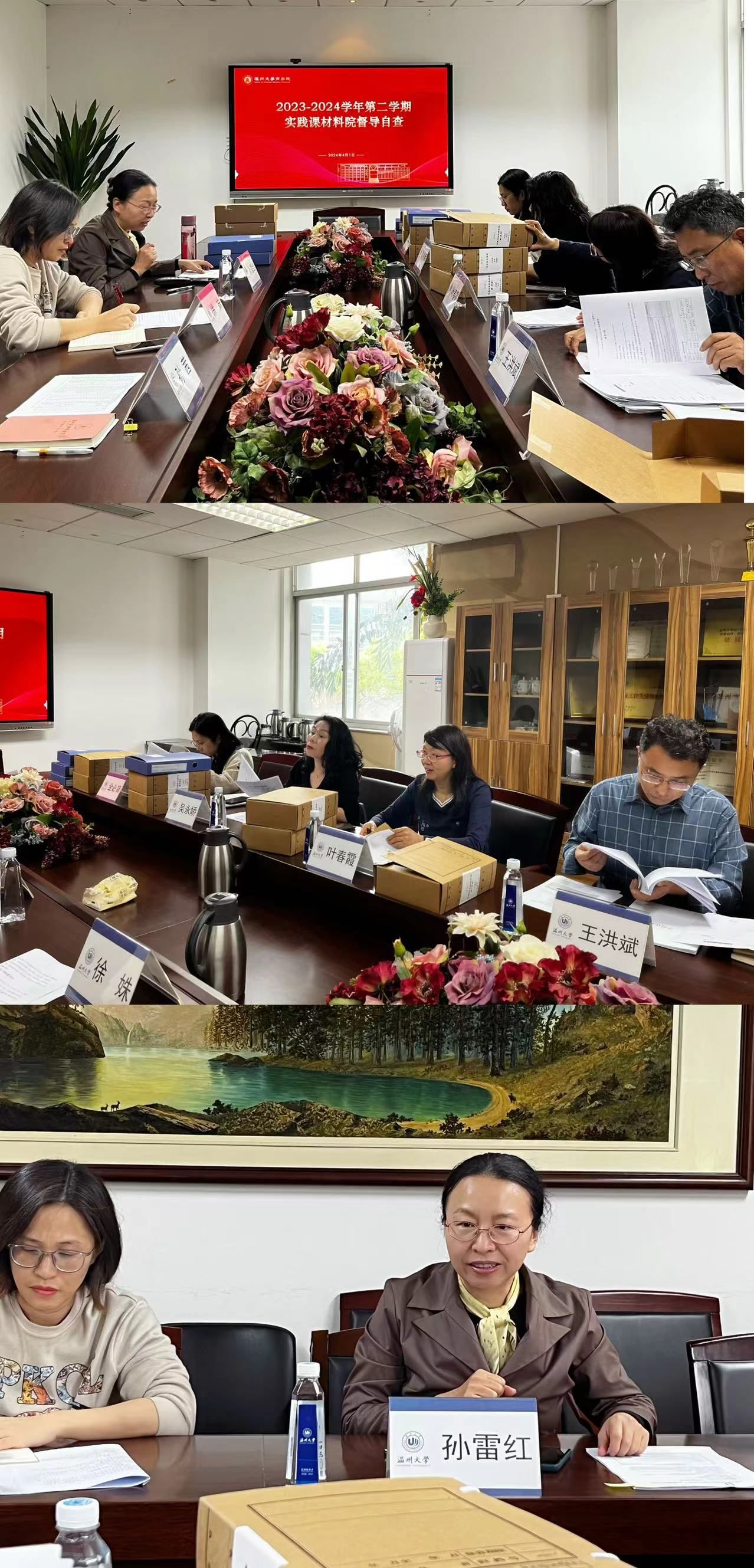 实践课材料院督导自查工作圆满结束。本次督导检查工作由学院教学副院长陈文芝牵头,学院督导组组长孙雷红主持,督导成员吴永娇、叶春霞、王洪斌、金必简参会,对2023-2024学年的实践课进行了全面细致的督导检查。通过听取学院实践教学工作汇报、学校实践课材料要求、查阅实践课档案材料,督导组对实践课程进行了探讨与评价,为提升我院实践教学质量指明了方向。
