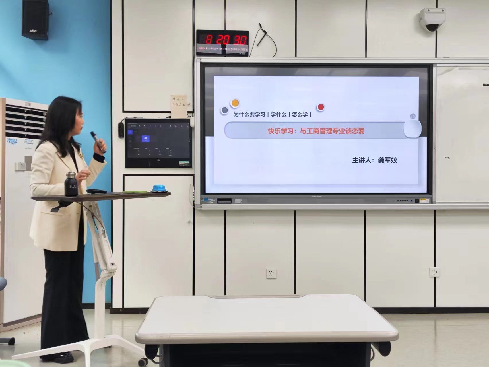2024年4月10日上午,在北校区法学院107教室内,龚军姣老师为23工商管理班级的带来了一节关于快乐学习的课程,同学们受益良多。