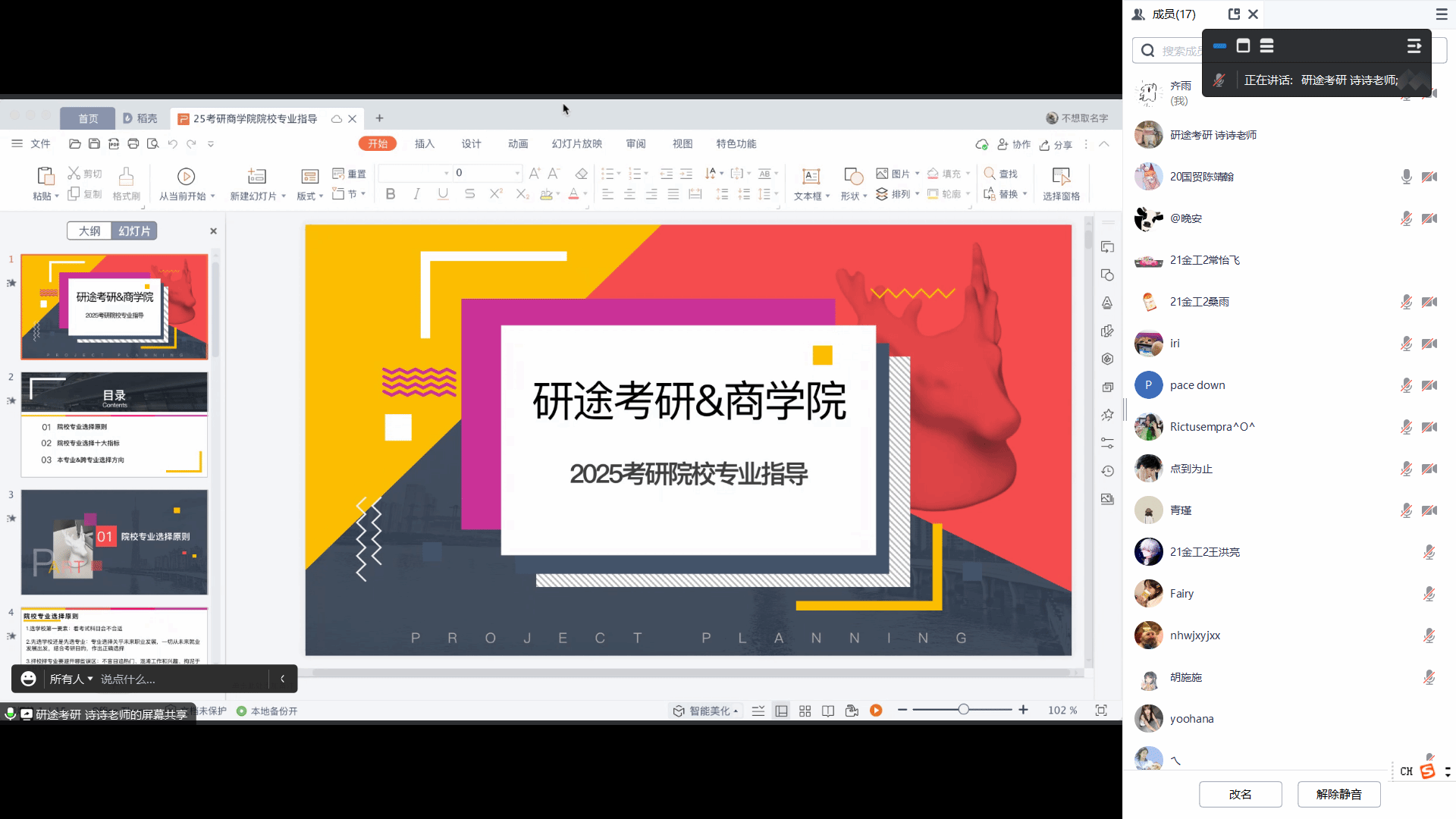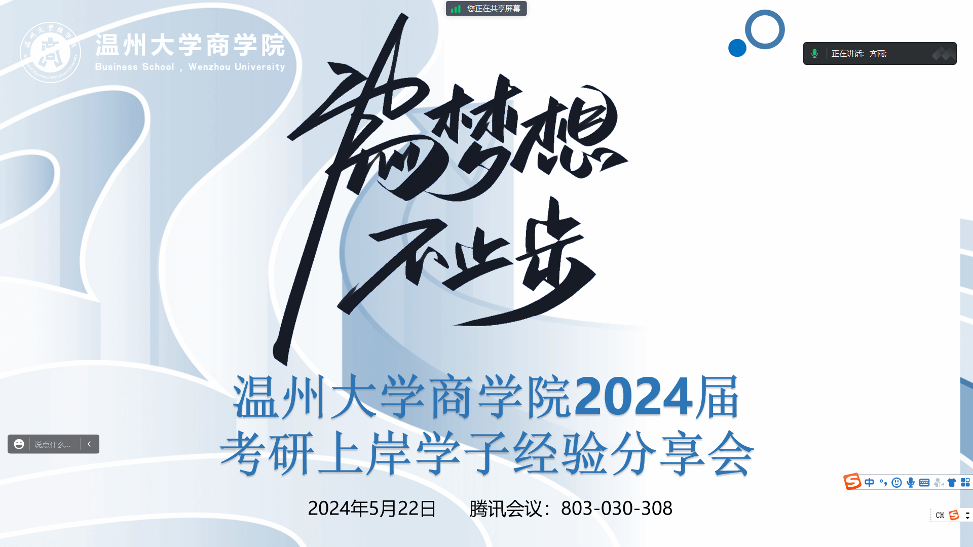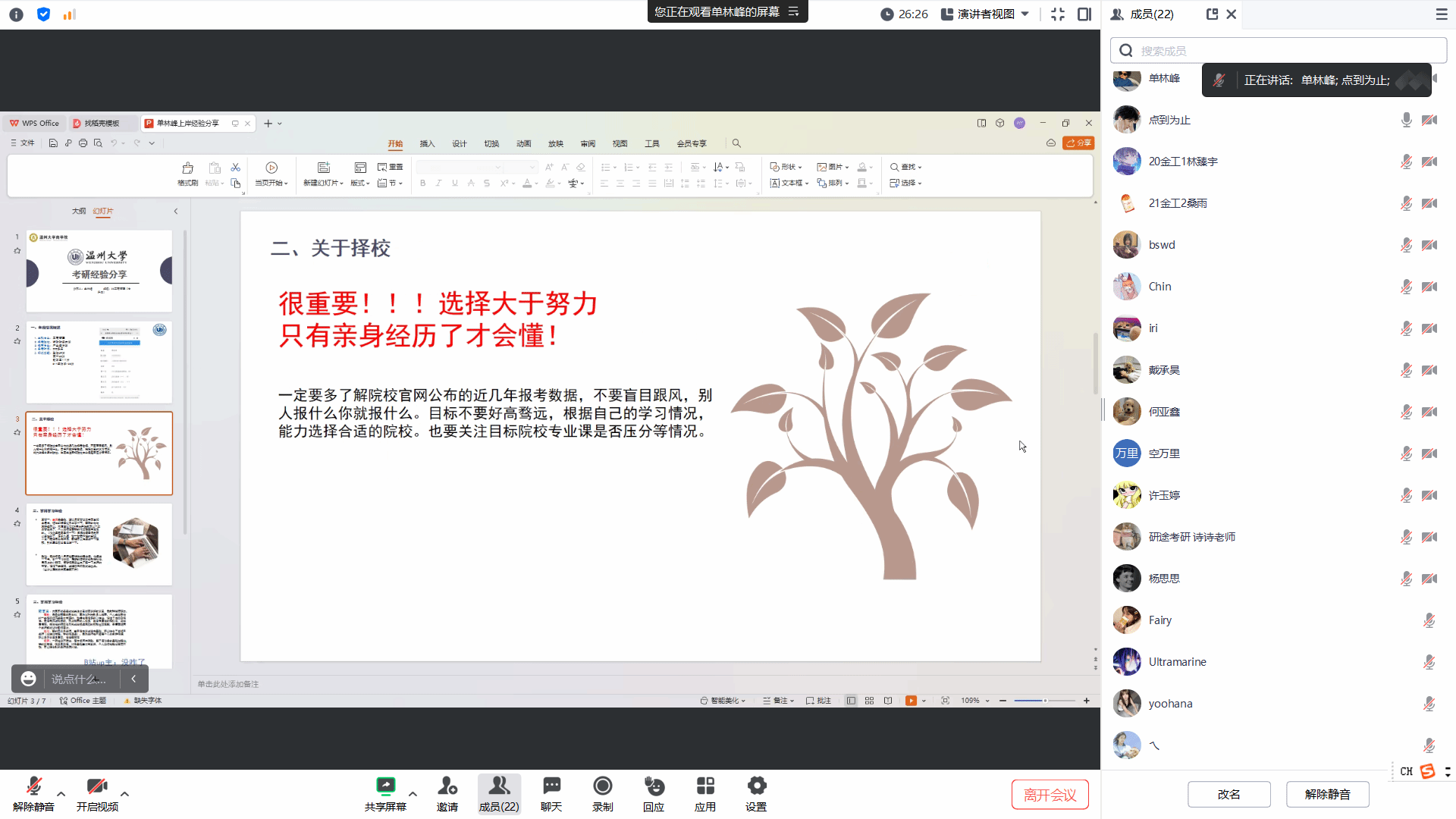 联合研途考研于近日在腾讯会议上成功举办了“2024届考研经验线上分享会”。在这场别开生面的线上交流中,六位成功上岸的学姐学长们结合自身考研经历热情耐心地回答了学弟学妹们的各种问题,现场气氛十分热烈。