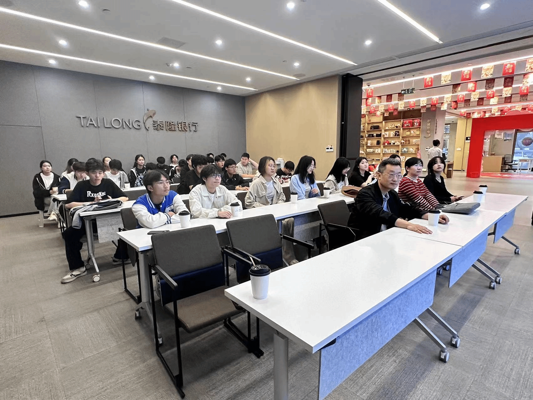 教工第一党支部书记周建华、金融工程系主任林德根和王芳芳老师的带领下,来到了泰隆银行龙湾支行进行实地参观学习。此次活动旨在让学生们更直观地了解银行业务运作,感受老王论坛,提升专业素养。