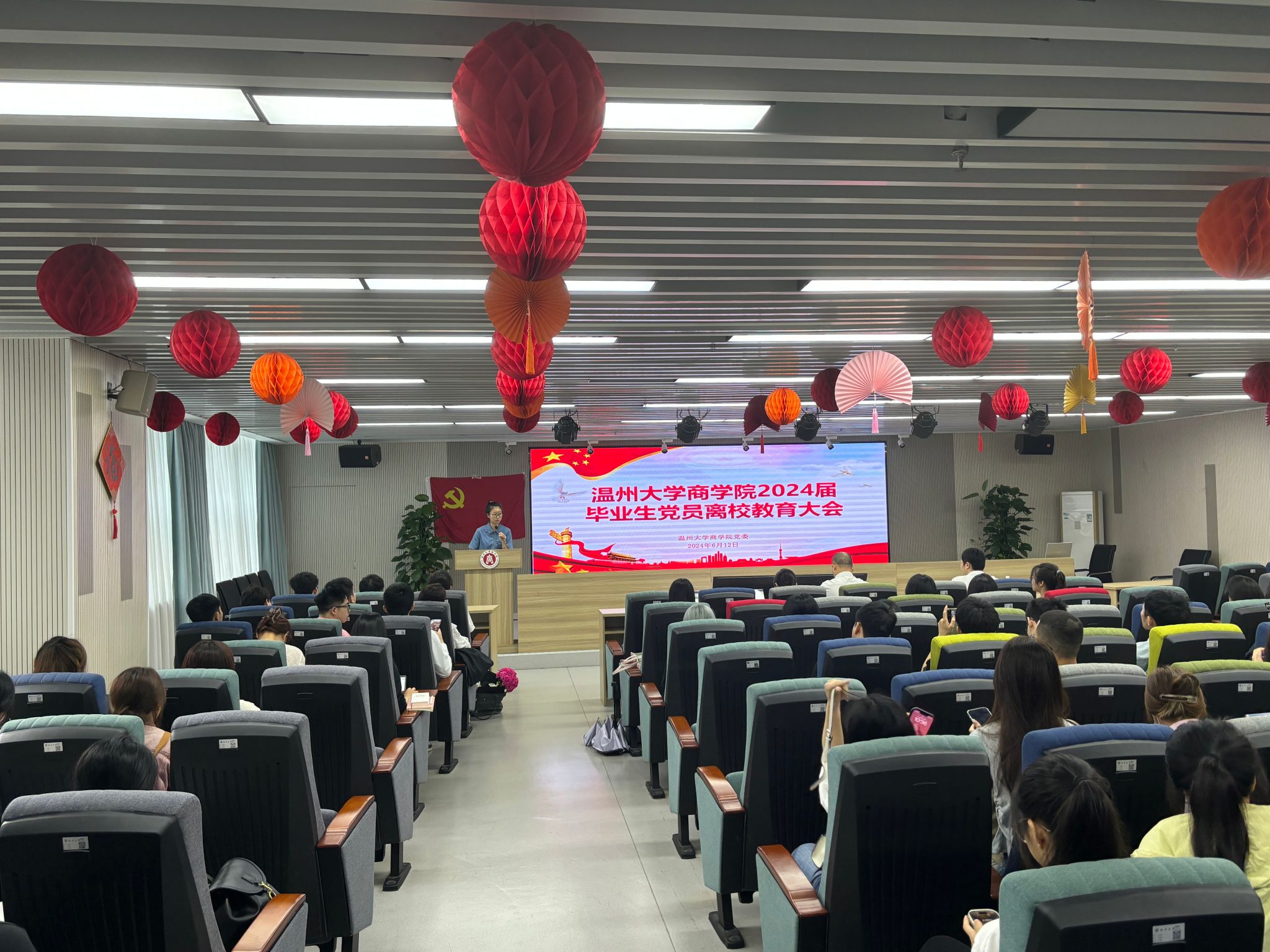 学业有终点,党员使命无止境。希望毕业生党员同学们,无论未来走向何方,都要坚守党性原则,将党纪党规内化于心、外化于行,在就业或升学过程中,始终保持清正廉洁,诚实守信,以党员的标准严格要求自己,发挥模范带头作用;同时,不忘母校恩情与嘱托,时刻以党员身份严格要求自己、约束自己,在以后的工作、学生、生活中继续发光发热,未来无论身在何方,都能够讲好温大故事和商院故事,传播温大和商院好声音,争做一名优秀的、清正的、廉洁的中国共产党人。