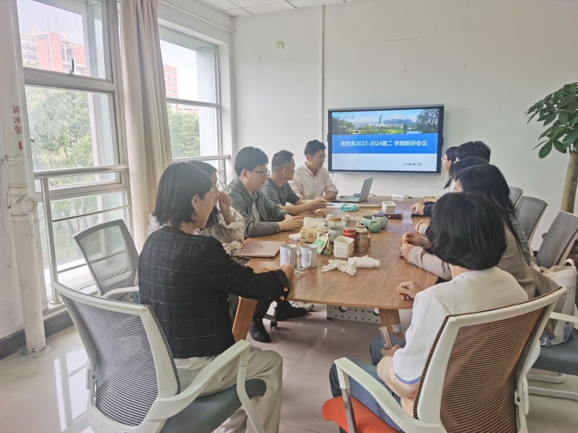 国贸系在系办公室A308举行本学期第一次教研工作会议,国贸系全体教师参加,会议由系主任姜亮老师主持。各位老师对以下事项进行了讨论。