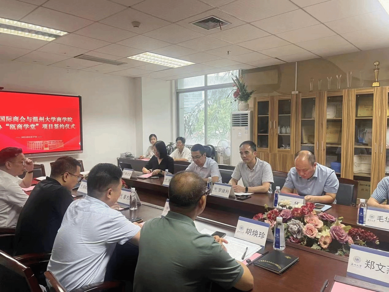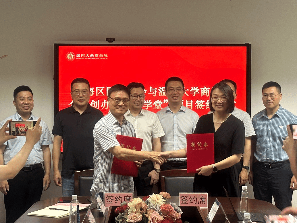 与瓯海区国际商会正式签订合作框架协议书。双方将遵循“优势互补、互利双赢、注重实效、共同发展”的合作原则,进一步促进校协企优势互补、资源互补。温州大学地方合作处副处长王鹏表示,“希望借此机会进一步探索校地合作新模式,实现校企协作的互联互通,促进产教研融合发展,提高人才培养质量,推动人才与产业发展同频共振。”