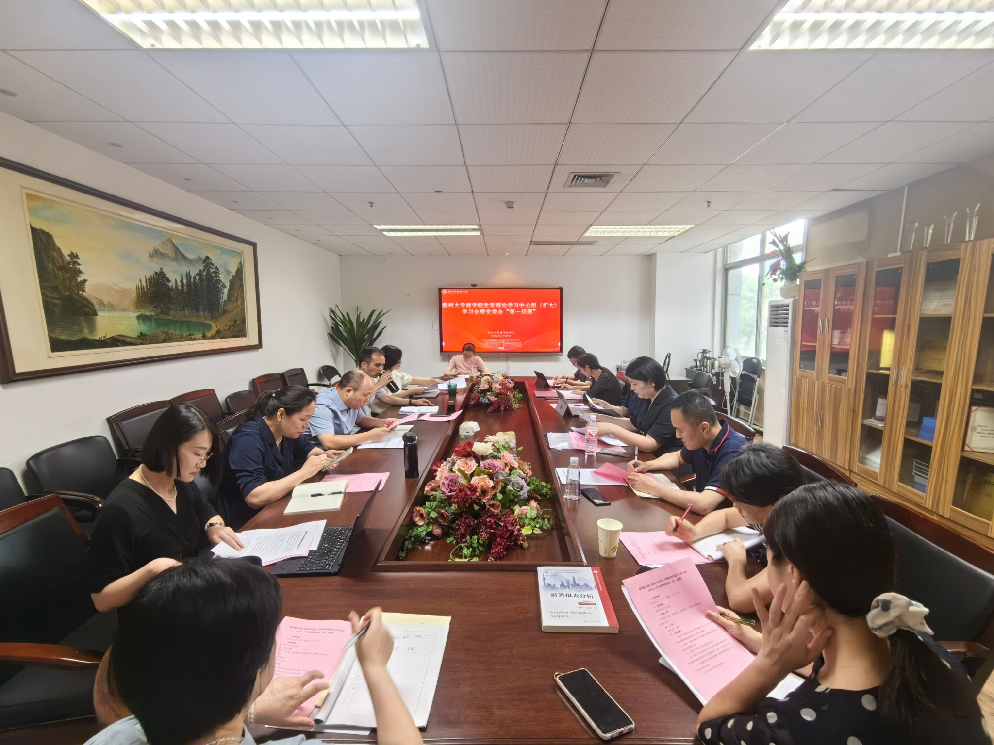 党委在A222会议室召开“第一议题”暨2024年6月理论学习中心组(扩大)学习会。会议由党委书记唐华主持,院领导班子成员、党委委员、纪委委员、支部书记及各科室负责人参会。