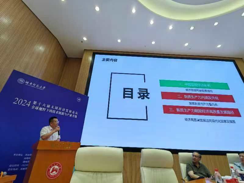 会上黄剑教授作“新质生产力赋能经济高质量发展”报告,围绕中国宏观经济形势、新质生产力内涵