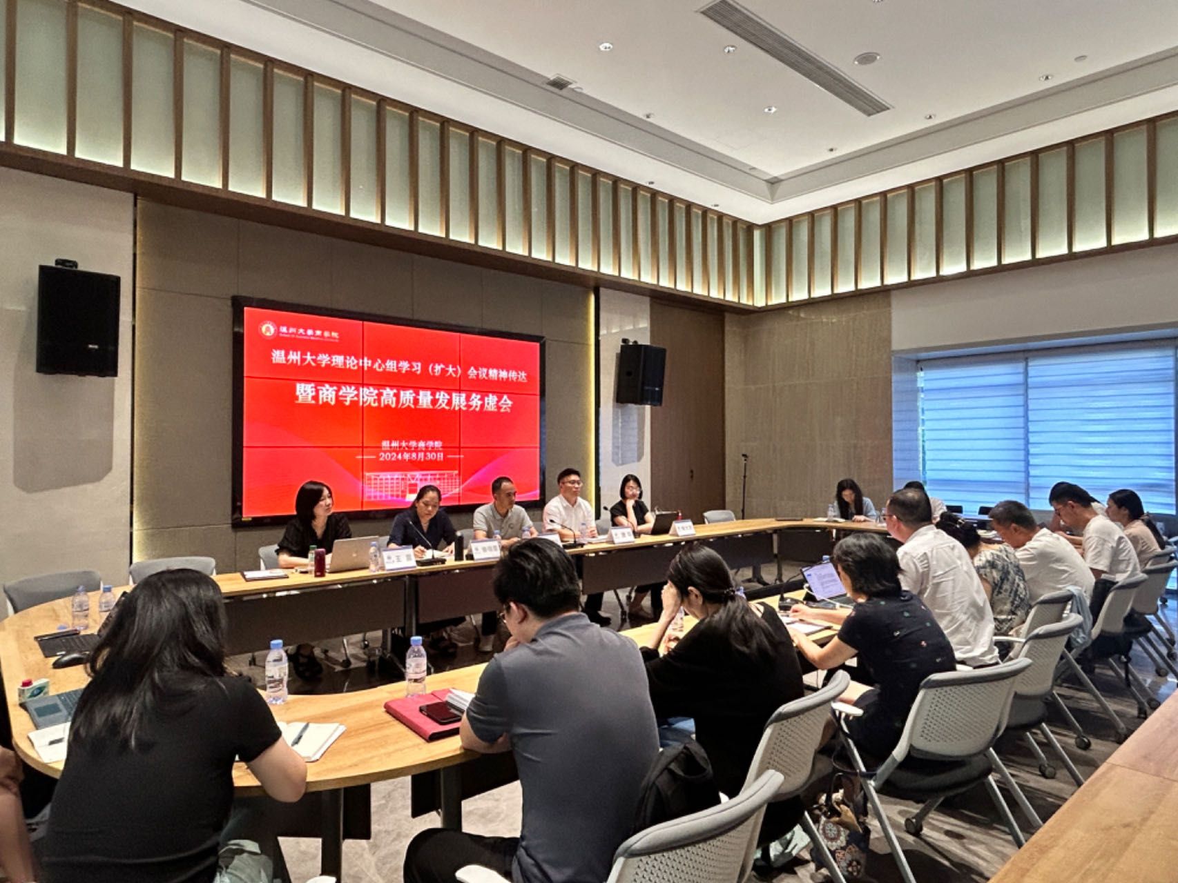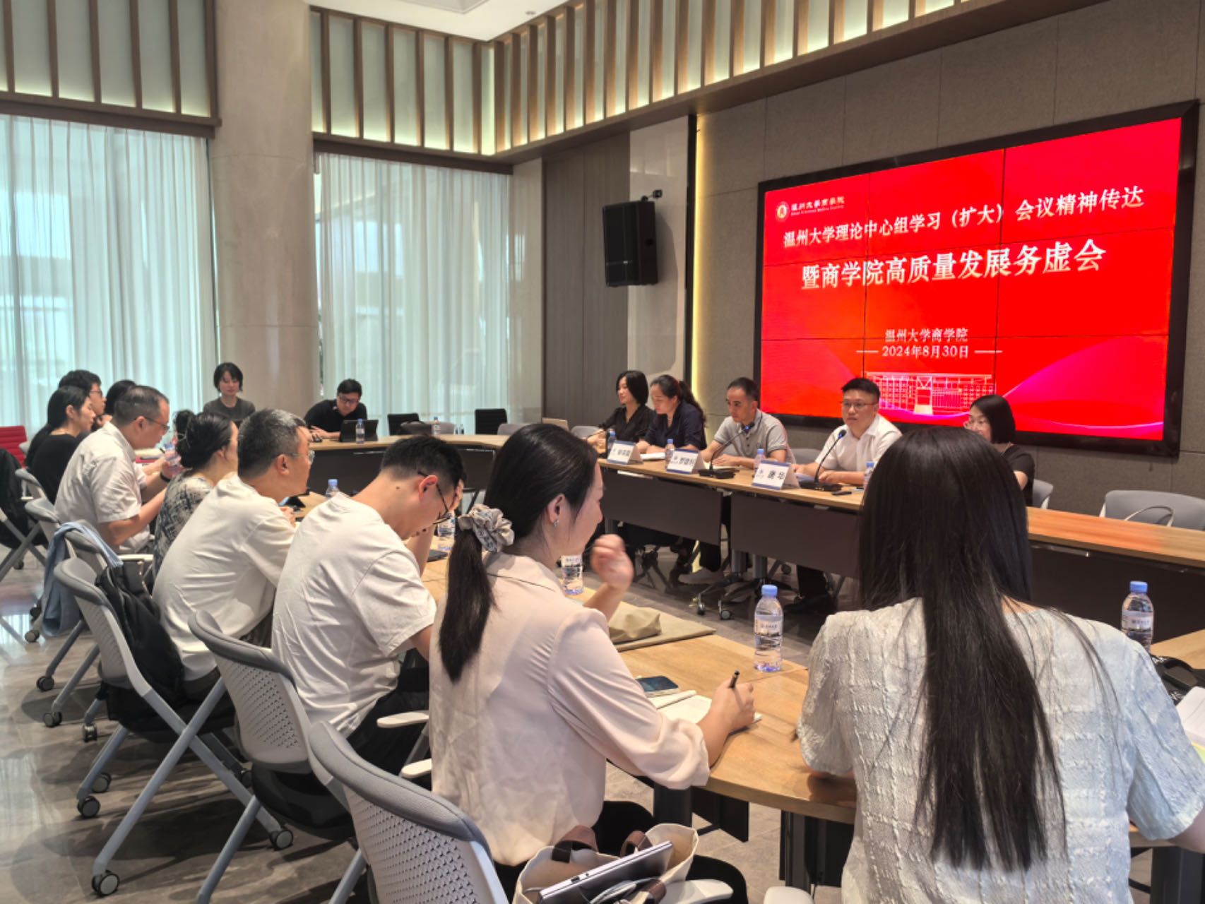 召开党委理论学习中心组(扩大)学习会暨学院高质量发展务虚会,传达学校党委理论学习中心组(扩大)学习会会议精神,学习贯彻党的二十届三中全会精神,研究部署学院高质量发展贯彻落实举措。会议由党委书记唐华主持,院领导班子成员、各教工支部书记、各系主任、专业负责人、各科室负责人、教师代表等参会。