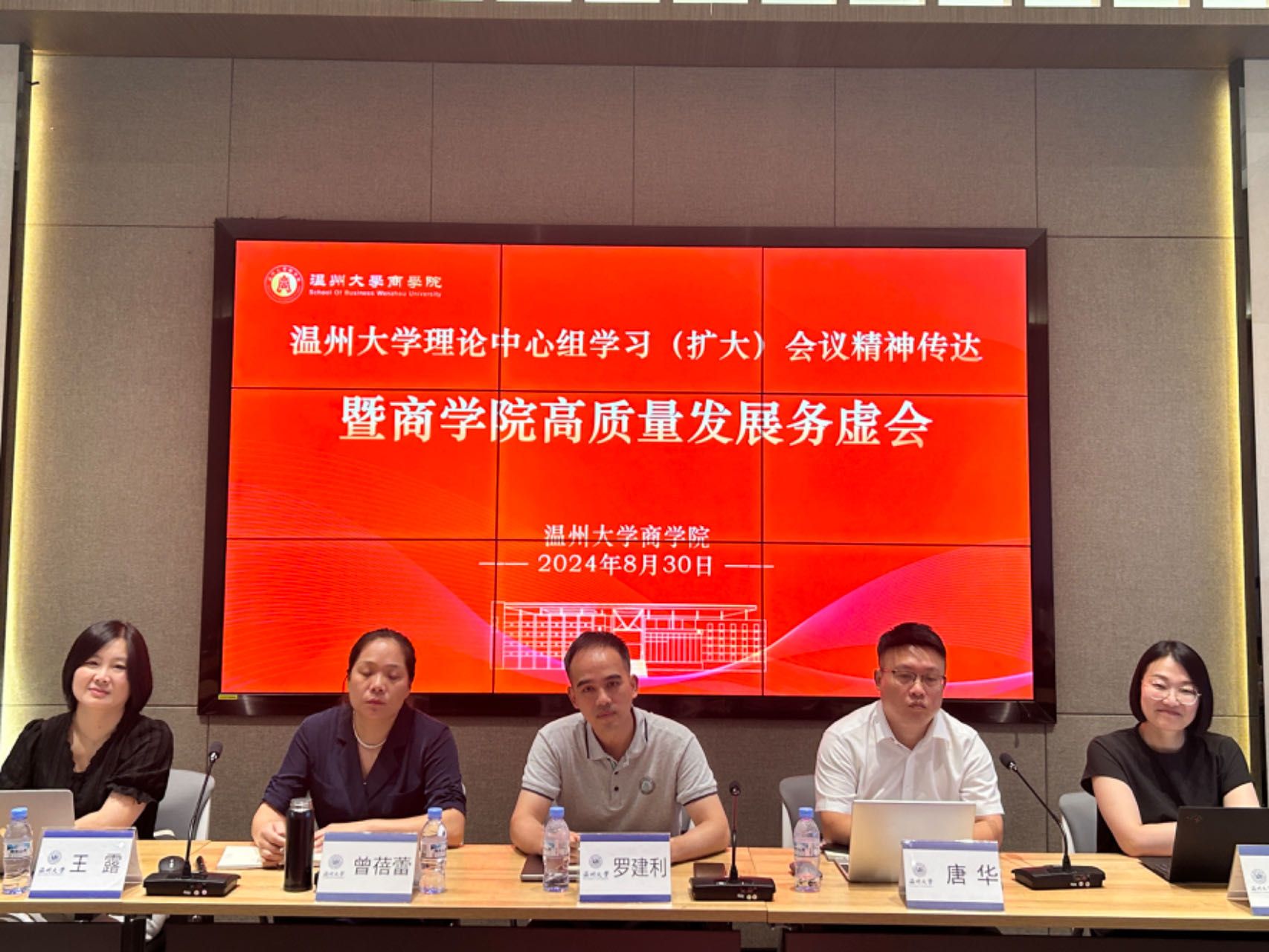 随后,王露副院长、陈文芝副院长、曾蓓蕾副书记结合分管工作作学院发展改革思路与举措专题汇报。王露副院长从专业设置、课程质量、教学资源、考研升学、国际化五个方面对其分管工作进行现状陈述与原因分析,并提出稳步开展专业优化、推动课程质量提升、实施教学资源建设、推进考研升学提升、探索国际化战略五大举措。陈文芝副院长分别从学科、科研、服务地方、实验室建设等四个角度切入分析学院学科科研工作的现状、问题与举措,强调要强化学科特色,前瞻布局学位点;紧跟学科发展方向,凝练研究方向,依托科研平台,开展有组织科研,提升标志性成果产出;加强顶层设计,充分整合院内外资源,提升服务地方能力;依托现有基础,兼顾教学科研,加强文科实验室建设。曾蓓蕾副书记就学生工作作《五育并举促成长 三全育人显成效——关于商科人才培养质量提升的思考》专题报告,重点剖析了学院就业、考研、出国出境升学等情况,并提出了系列有成效、有抓手、操作性较强的举措。党委理论学习中心组成员就专题报告从专业设置、教学质量提升、有组织科研等方面进行了交流发言。