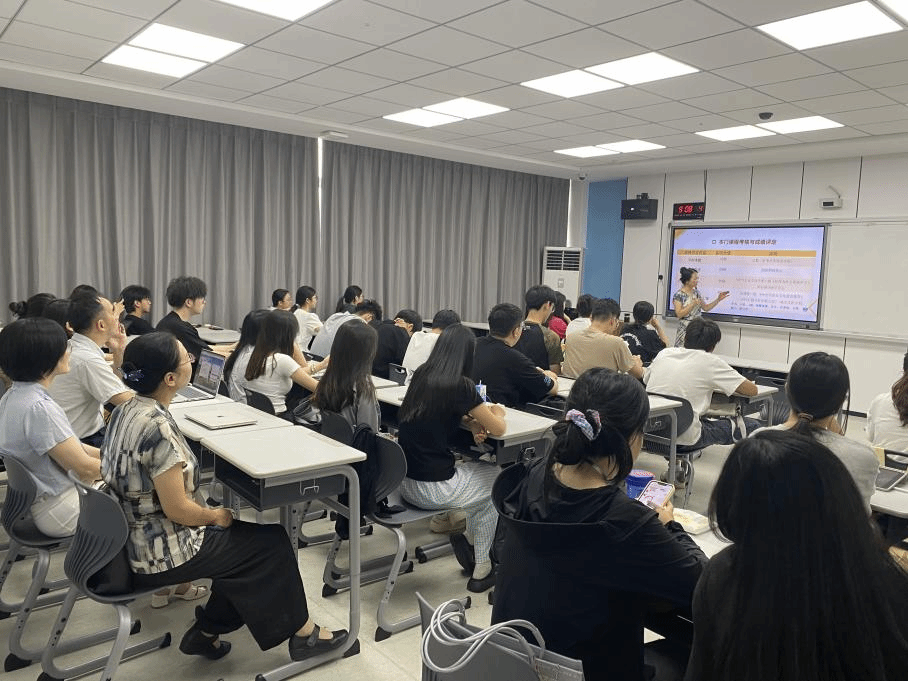 赵降英书记等领导和督导们参加课后研讨,分别从课程思政要素融入、教学设计、教学效果及教学技术手段等角度对任课教师的课堂教学进行了点评。