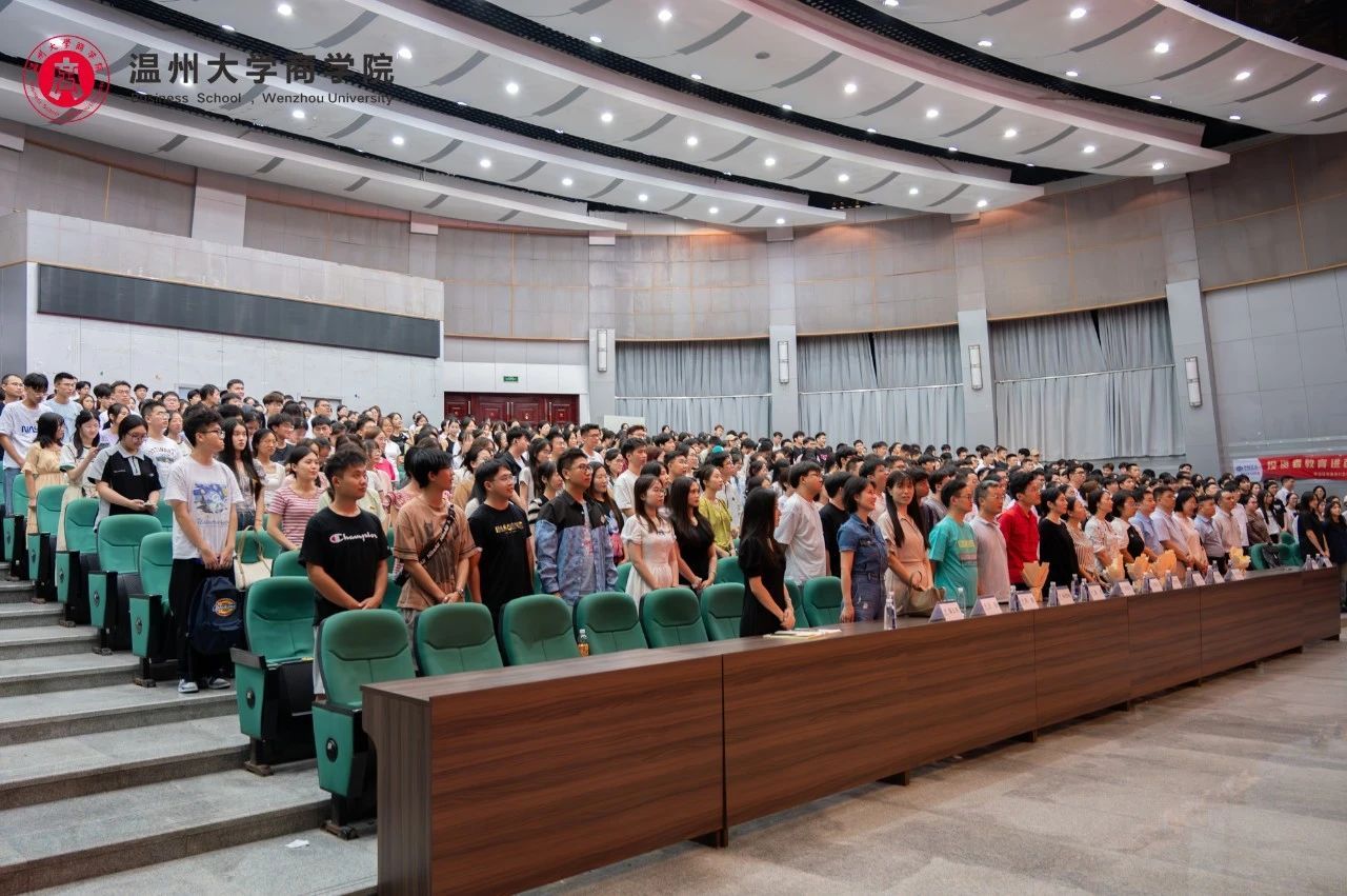近年来取得的辉煌成就,鼓励同学们珍惜学习时光,充分利用学院学校提供的优质资源,努力学习专业知识,同时勇于探索未知领域,培养创新精神和实践能力。最后,罗院长强调了仰望星空与脚踏实地的重要性。他勉励同学们要敢于“做梦”、勇于追梦,同时也要脚踏实地、勤奋努力。奋斗是青春最亮丽的底色,行动是青年最有效的磨砺。他呼吁同学们以校训“求学问是、敢为人先”为指引,以院训“尚信明道,勇毅笃行”为使命,不断追求卓越,不断超越自我,在温大这片热土上绽放出最耀眼的光芒。