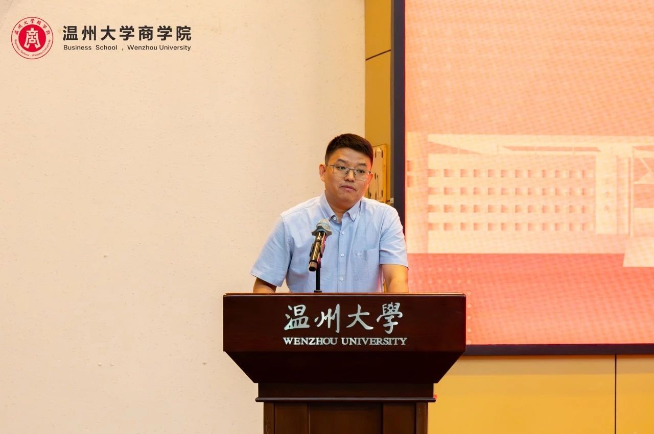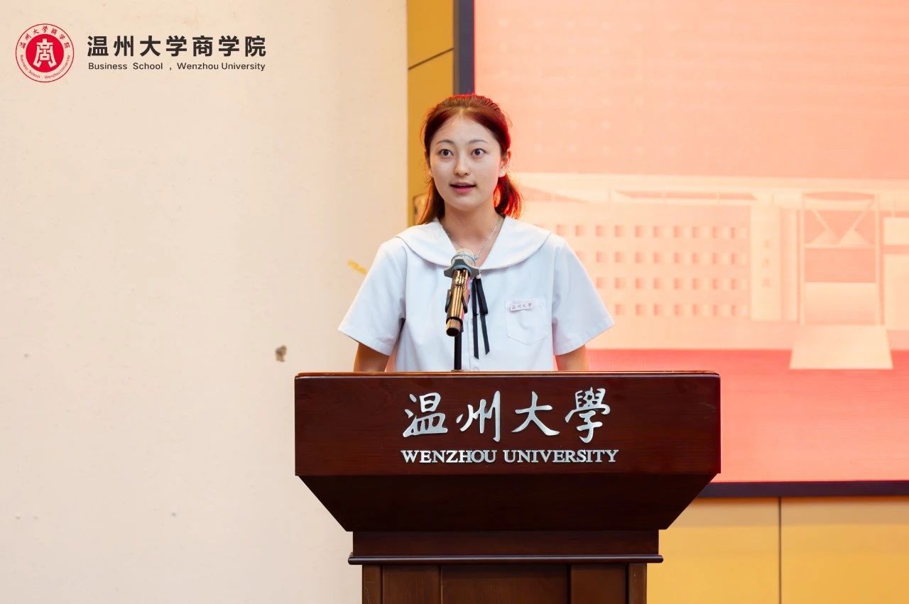 教师代表周祥军老师以亲切而务实的语言,向新生们传授了宝贵的成长经验和心得体会。第一,安全问题。周老师呼吁同学们树立大安全观,珍惜自己和他人的生命安全。第二,新生们应当追求快乐健康的生活,培养良好的心态和体魄,以积极的心态面对大学生活中的挑战与变化,健康与心态是成功的基石。第三,关于学业,他指出,在竞争激烈的当下,同学们应脚踏实地,专注于课程学习,并在感兴趣的领域深入探索。他鼓励大家耐得住寂寞,坐得住冷板凳,为未来的成功打下坚实的基础。第四,周老师还强调了课外活动的重要性,鼓励同学们积极参与各类竞赛和活动,拓宽视野,提升自我。最后,周老师寄语新生们注重品德修养,拥有广阔的胸怀和敢于尝试的勇气。相信在温州大学这片沃土上,每一位新生都能找到属于自己的舞台,成为温州大学最靓的仔!