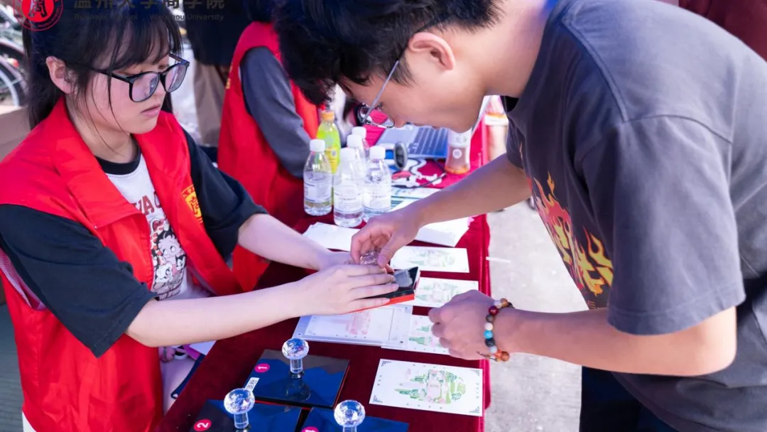 的独特风采。完成所有打卡后,将获得一套融合温州风貌、温大情怀与学院特色的精美套章,象征其作为“City不City,皆由我心”探索者的荣耀。同时可以获得幸运轮盘大抽奖,奖品以“温州探索之旅”打卡点相呼应,分别是江心屿门票、雁荡山门票、温州大学明信片、温州大学公仔(温温)、同时也可赢得共享美好“食”光院领导食堂餐叙券,共享午餐的同时,也是一次心灵的交流与思想的碰撞。活动以寓教于乐的形式,激发新生对校园生活的热爱,深化“学在温大,爱在温州”的情感,让参与者在欢笑与收获中体验教育的乐趣,探索青春与梦想的无限可能。