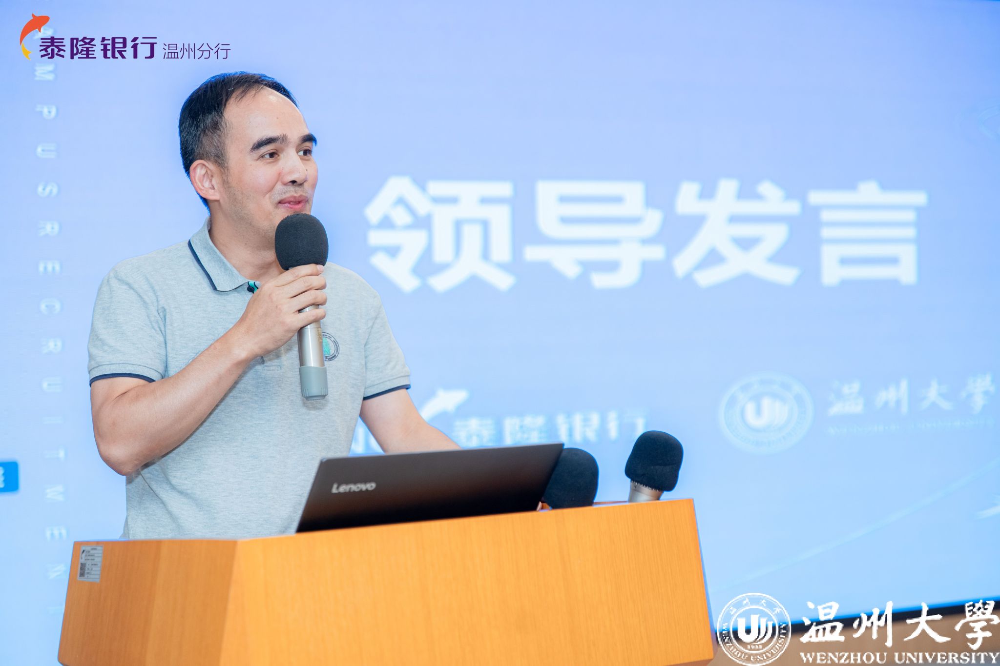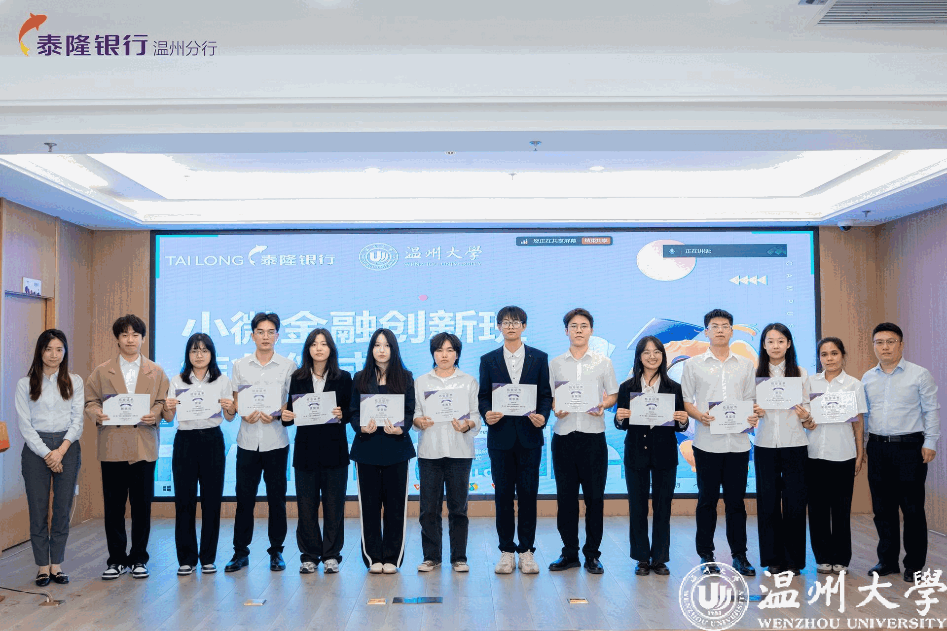 的学生提供如此良好的平台。看到了同学们在成果汇报中自己在泰隆实习实践中的思考,也希望同学们在未来用更多的理论知识创新性的去解决银行中现实的问题。他指出高校的产教融合,是将课堂的知识带到就业岗位的一个纽带。通过此次活动进一步凸显了金融人才培养的重要性。也希望同学们通过此次创新班的平台,不管今后是否加入泰隆,谨记这次平台的经历,发现自身不足,在未来更好的提升自己。