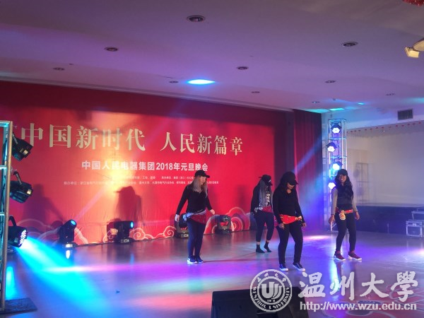 国际部主任王洪斌博士、国际专员林大可老师、专业教师阮骐以及留学生代表等参加了该集团公司的“中国新时代·人民新篇章”元旦联欢晚会,人民电器集团副董事长,浙江人民电器有限公司董事长郑经洁先生,热情接待了王洪斌等一行。通过此次活动,加深了学院“校企产学研”合作,体现了学院服务区域经济发展目标,提升了学院国际化发展的影响力。