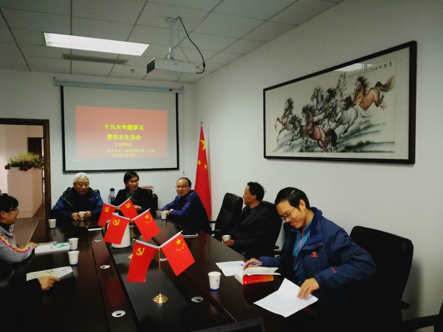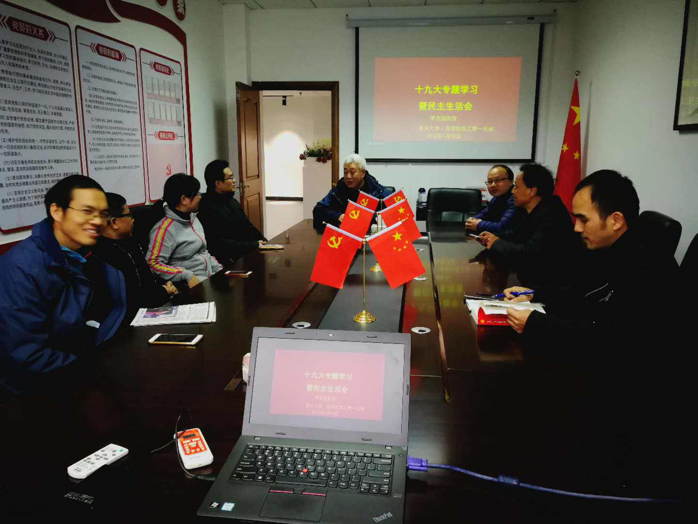 教工第一支部邀请李志国教授在党员活动室做十九大专题讲座和召开支部民主生活,会议由支部书记周建华主持。