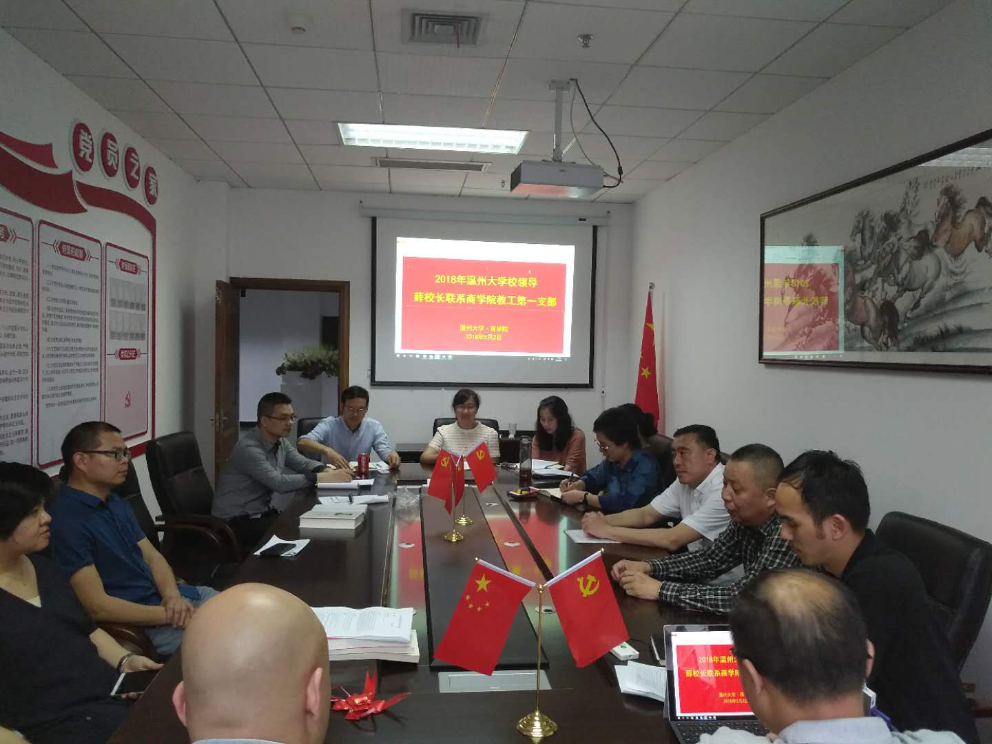 首先,由金融系支部书记周建华老师介绍了金融系支部的基本情况并汇报了近期支部的活动情况以及将来的活动计划。金融系共有15名教师,其中12名党员。金融系的党员教师年纪轻、学历高,具有较强的教学科研能力,在学院的各项工作中能够起到模范带头作用。金融系党支部近期以来举办了多项丰富多彩的党员活动和思想政治学习活动,且金融系党支部又申报成功2018年温州大学“党支部建设年”书记项目“走向大学城农行,请进温大金融系——创建老王论坛