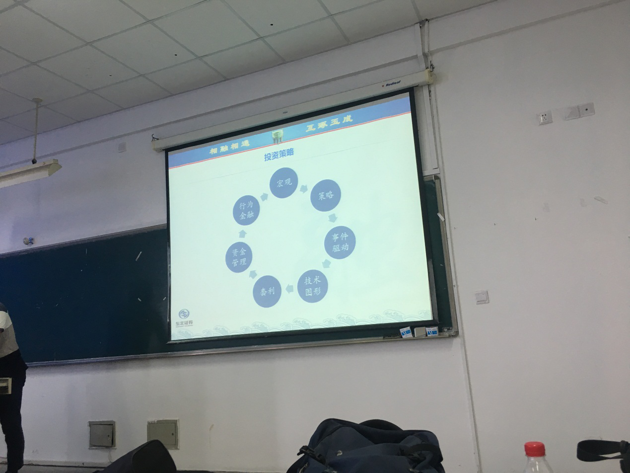 东北证券的陈玉玺总监则重点从投资理论、投资策略报告写作等方面为我们讲解深度讲解。在投资理论上,重点要正确处理好投资与投机的关系、利用树形原理对相关图形进行马后炮式的解释、利用骤变效应原理将极端情况考虑进证券投资中去,等等。最后还介绍了东北证券,详细说明了东北证券温州营业部正在筹办当中,急需像温州大学这样的本土毕业的学生加盟。