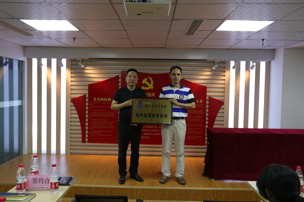 然后,举行了实践基地的签约仪式。罗建利副院长与陈晓晖董事长分别代表温大老王论坛