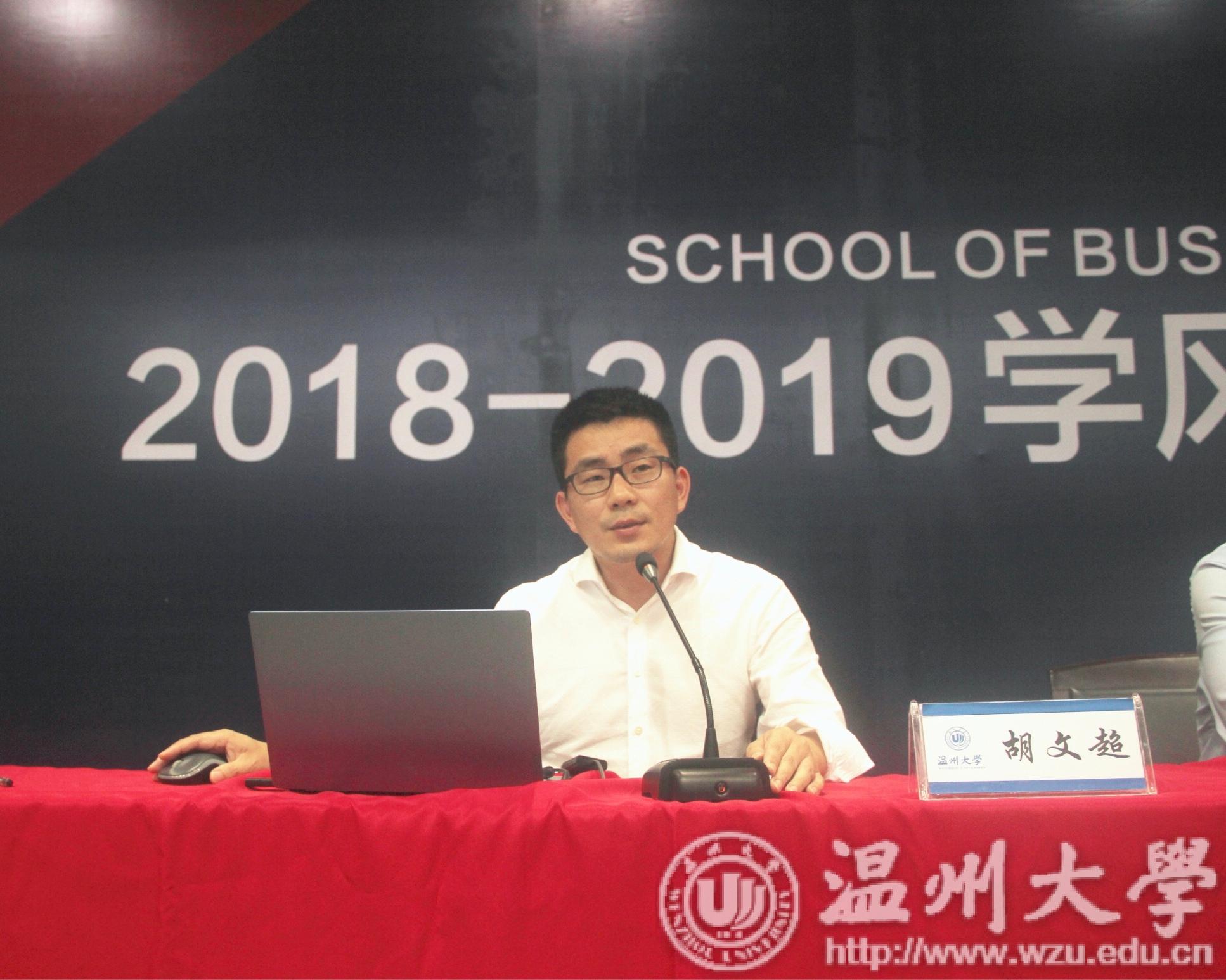 的创业教育情况。温州大学的创业教育被誉为中国高校创业教育“四大模式”之一,与清华,人大,黑大齐名。温大从2000年开创创新创业教育,开地方高校之先河,各个学院均有各自的创业空间,以分布式架构,聚合式共享,协同式发展为宗旨。在这样的平台支撑下,涌现出了一大批大学生创新创业的典型,如张良玉、傅智建、胡雪林等。温州大学有明确的创业支持文件和奖励政策,规定了详细的项目入驻程序,提供项目孵化补贴,奖励课外创业学分,还设立了创业大赛奖励,为学生创业提供了全方位的帮助。“互联网+”大学生创新创业大赛是一个展示梦想的机会,一个比拼努力的平台,胡院长鼓励同学们积极参赛,希望学生们可以通过参赛,获得能力提升、积累人脉、增长见识和物质回报。胡文超副院长也详细介绍了如何参加创新创业大赛,为在座的学生们提供了方向。