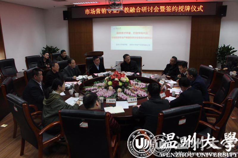 、人本集团十足商贸集团有限公司三方有关领导及师生代表,于2018年12月12日在温州大学南校区岩松堂举行市场营销专业产教融合研讨会暨签约授牌仪式。会议由资产公司资管部负责人万贤标主持。