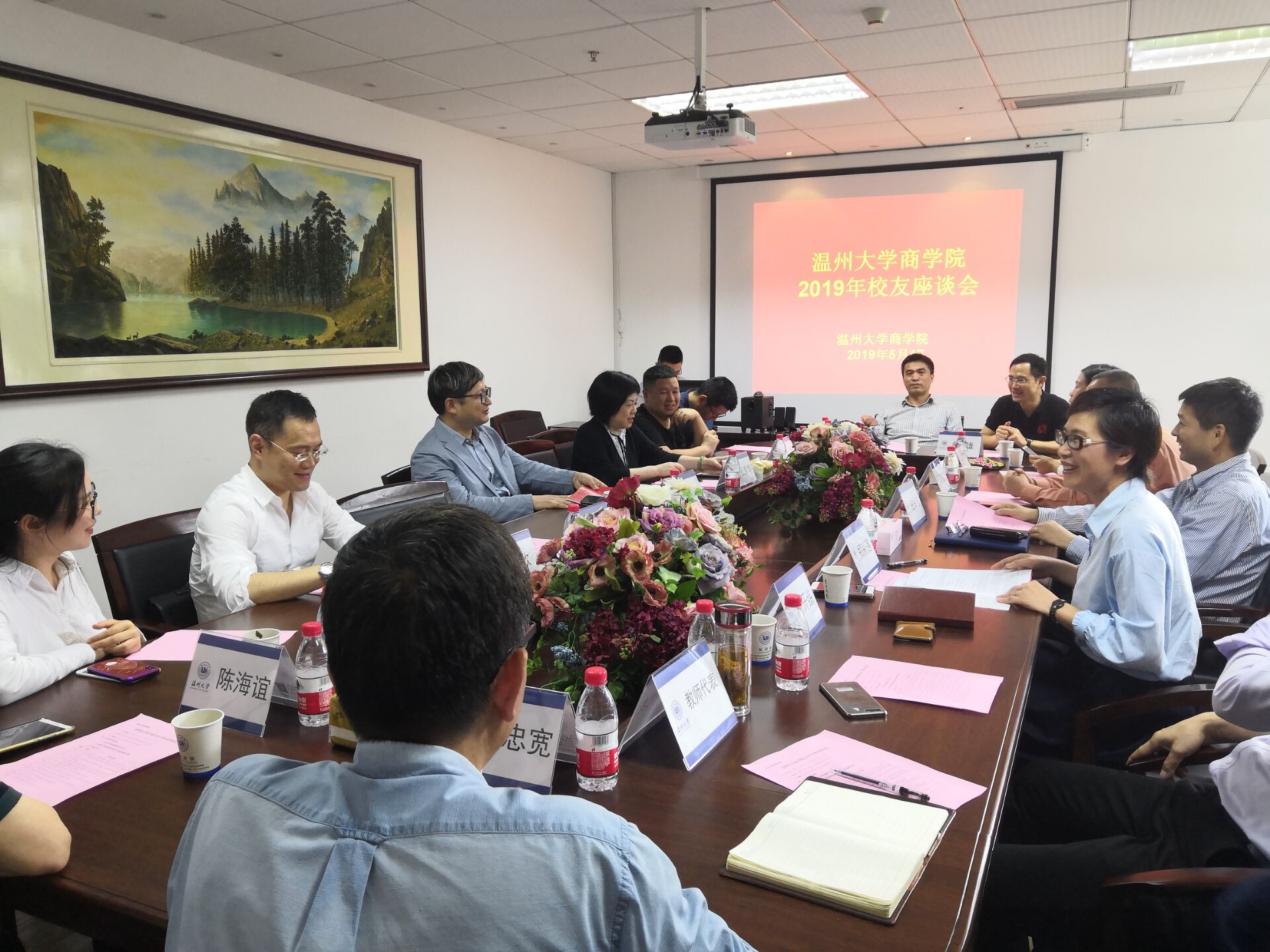 2019年校友座谈会,来自学院9届4个专业的校友代表回家参加座谈会。参加会议的还有温州大学党委副书记庄兴忠、学院领导班子、及部分教师代表。本次座谈会由学院党总支书记郑彩莲主持。